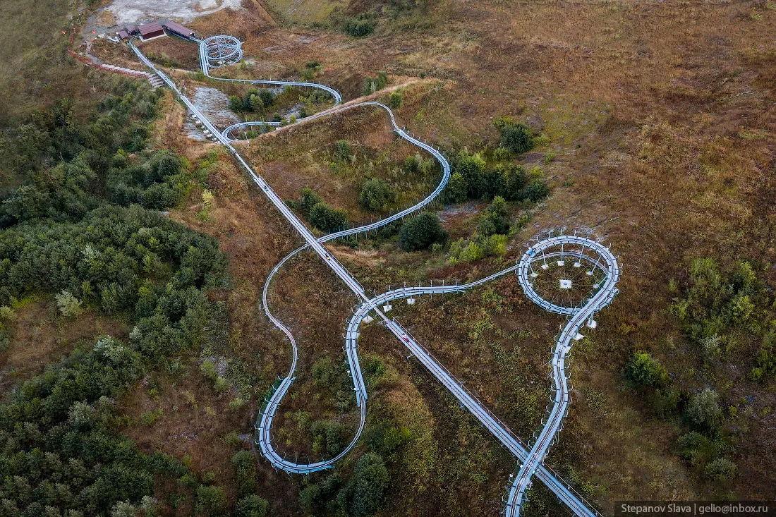29. Двухместные сани родельбана развивают скорость до 40 км/ч и проходят по маршруту из кривых линий и кругов. На машине такая скорость кажется небольшой, но в санях всё ощущается иначе. Говорят, что летом это одно из самых популярных развлечений курорта.