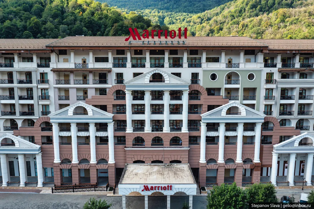 36. Самым респектабельным отелем в «Красной Поляне» считается гостиница «Сочи Марриотт Красная Поляна». Это пятизвёздочный курортный отель, в котором есть открытый и закрытый бассейны, фитнес-клуб, детский центр, СПА с сауной, баня.