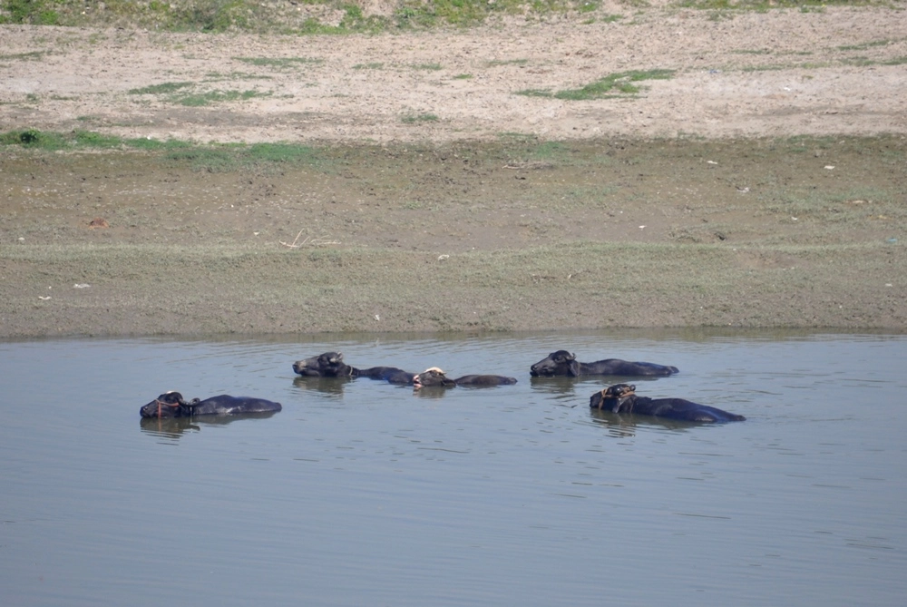 15. Ямуна — мощная река с сильным течением. Особенно она разливается летом, в период муссонов — а сейчас уровень уже чуть спал. По средней водности эта река сопоставима с Волгой у Нижнего Новгорода.