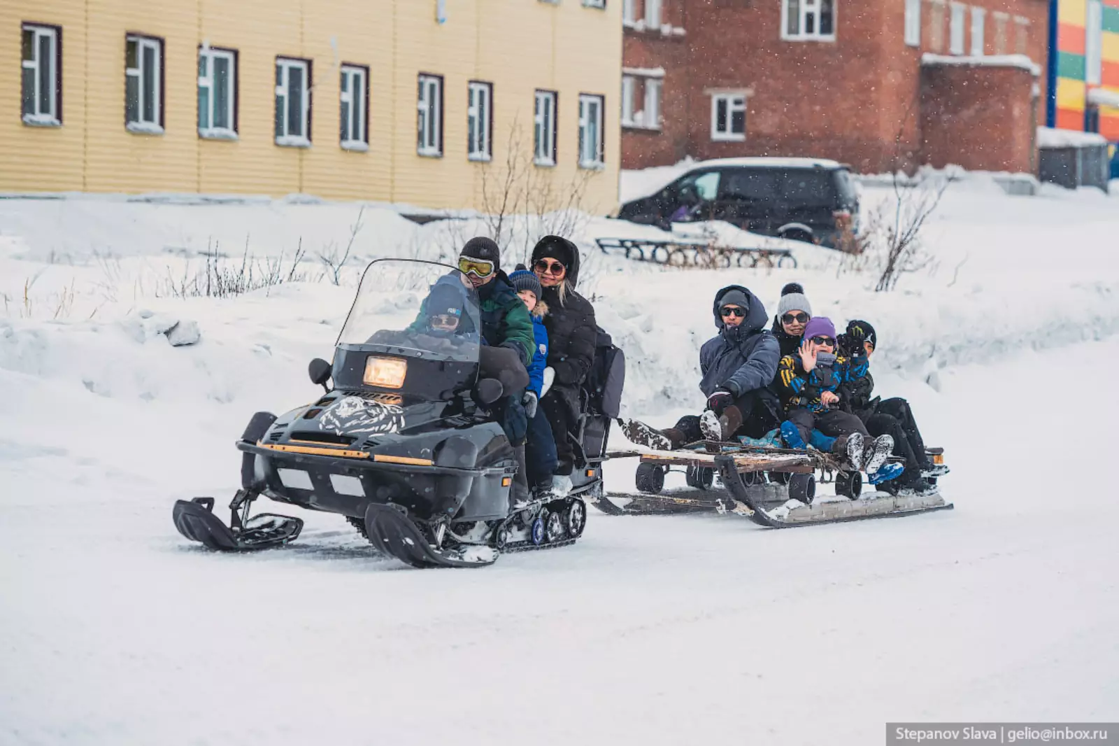 37. Снегоходы ездят прямо по улицам города — здесь это самый распространенный способ передвижения.