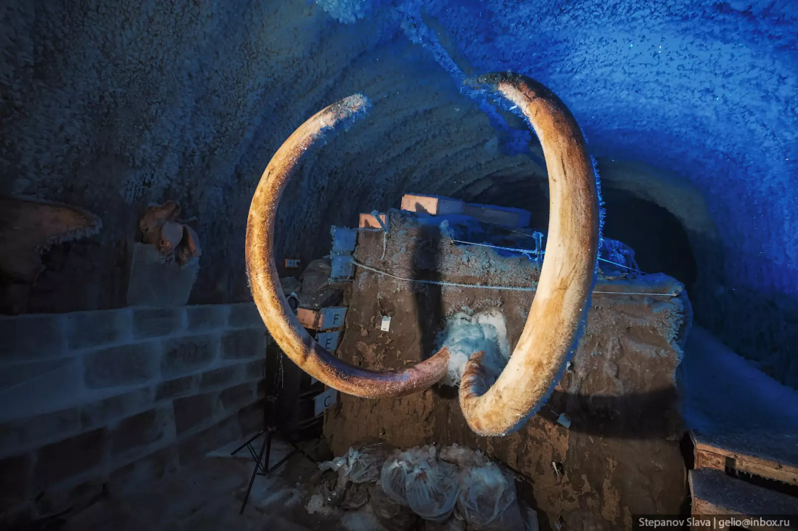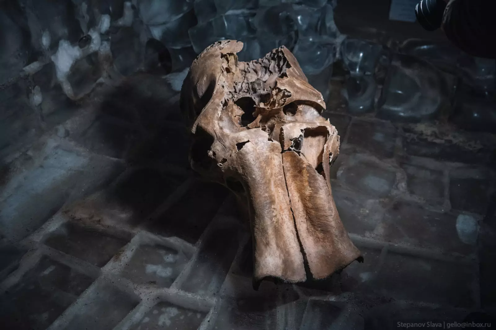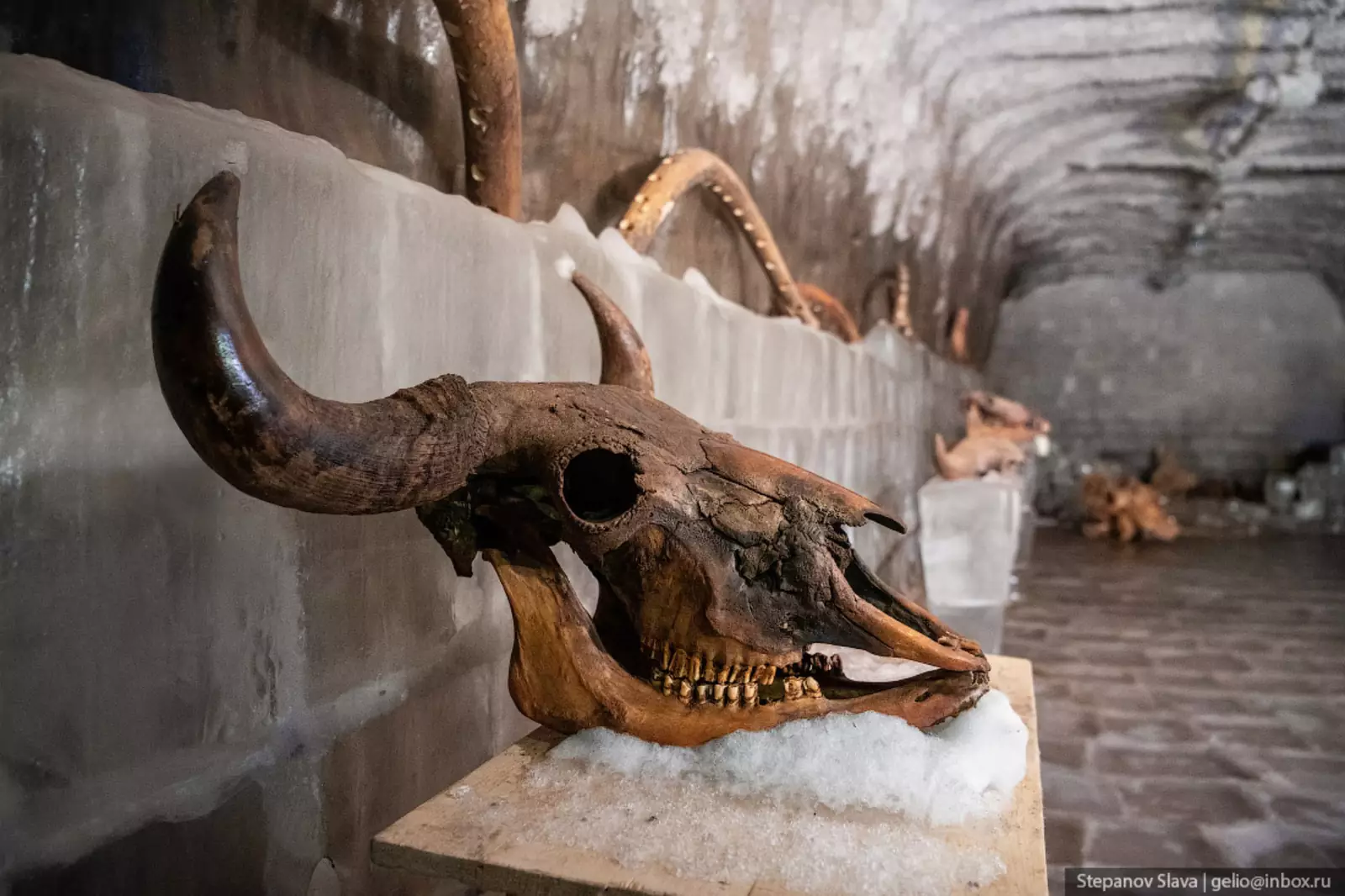 21. В пещерах представлены и разные экспонаты — фрагменты костей мамонтов и других животных, черепа, бивни.