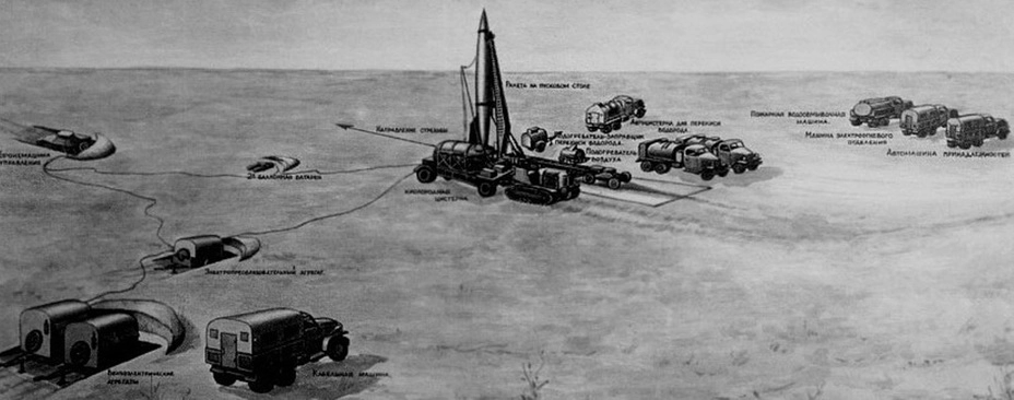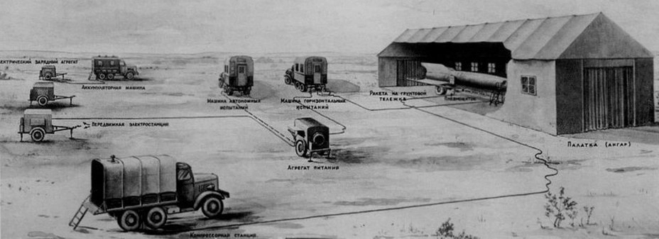 Большим подспорьем стал спецпоезд, который состоял из железнодорожного установщика ракеты, ёмкости для горючего и окислителя, вагонов лабораторий системы управления, двигательной установки, зарядки батарей, химической лаборатории. Кроме того, в состав поезда входили жилые вагоны для офицеров стартовой и технических команд и вагон-столовая».