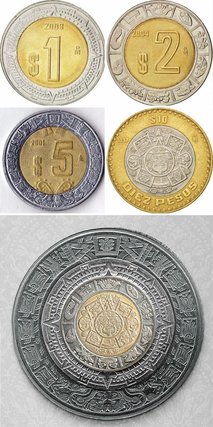 Если наложить рисунки всех мексиканских монет друг на друга, они превратятся в ацтекский календарь