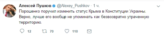 «У Порошенко не осталось выбора», «Доигрались», «Может, нам в Конституции РФ что-нибудь о статусе Аляски написать?» — злорадствуют интернет-пользователи.