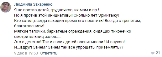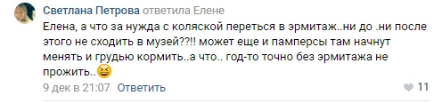 Впрочем, настоящая травля женщин с колясками началась позже, когда в Сети появился пост о том, что теперь такие экскурсии для мам будут проводить в Эрмитаже на регулярной основе.