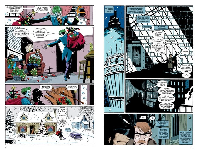 Но Джокер — лишь один из той «галереи злодеев», что предстаёт перед нами в этом романе, вполне соответствуя брошенной в адрес Бэтмена реплике: «Этот город кишит психами с тех самых пор, как ты тут объявился» (а вся эта история, как можно узнать из дополнительных материалов, «происходит в эпоху "Года первого"»). И Джиму Гордону приходится даже напоминать Тёмному рыцарю, что в надежде поймать одного безумца тот готов прислушиваться к советам другого…