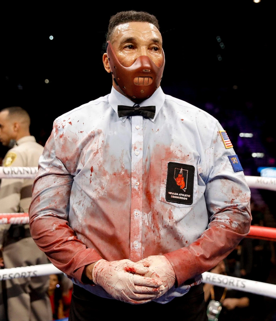 Кровью были залиты не только боксеры и ринг, но и рефери Тони Уикс, который постоянно разнимал спортсменов. Выглядел он настолько ужасающе, что пользователи Сети начали делать с ним «фотожабы» на кровавую (и не только) тематику.