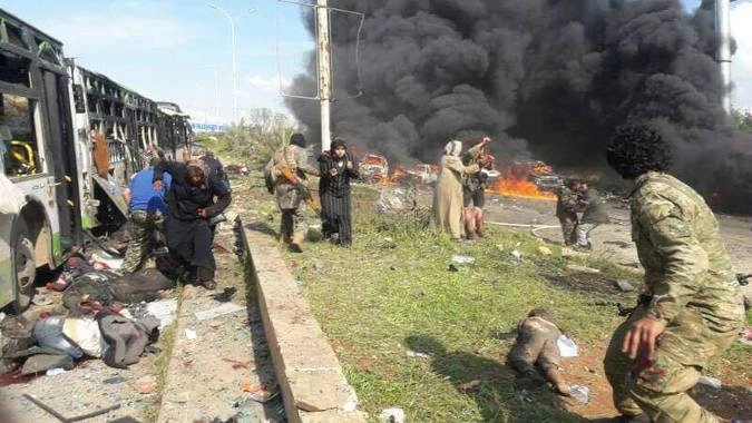 Снял и выложил ролик в своем Твиттере очевидец взрыва по имени Ахмад Макия. Судя по кадрам, автобусы с эвакуированными жителями шиитских поселений Фуа и Кефрая, среди которых было много женщин и детей, были припаркованы у дороги. Люди занимались своими делами и не ожидали террористической атаки.