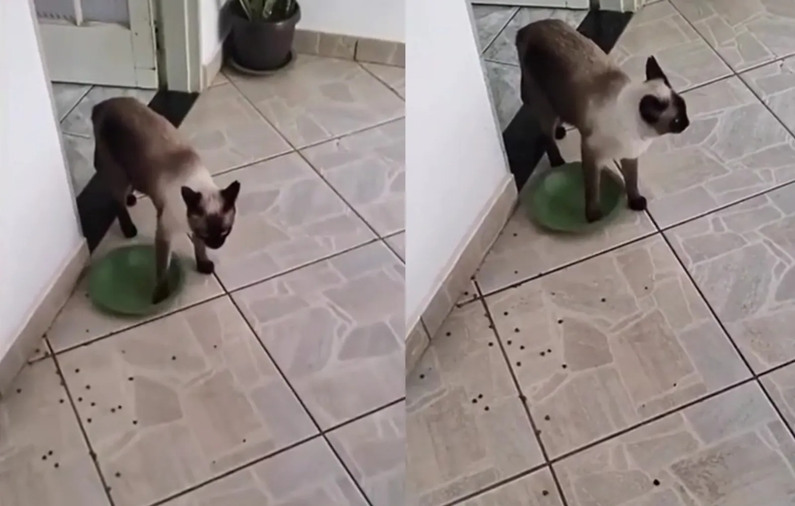Никакие уговоры владелицы не остановили голодного пушистика. Он даже не придал значения тому, что в его миске уже был корм, который рассыпался по полу из-за сильного раскручивания. Видимо, он показался коту несвежим, и тот решил потребовать новую порцию.