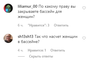 После волны негативных комментариев от женщин Каспийска и его окрестностей администрация спорткомплекса была вынуждена сделать аккаунт бассейна закрытым. Но отголоски выступления рассерженных женщин остались в комментариях других интернет-профилей спортивного объекта.