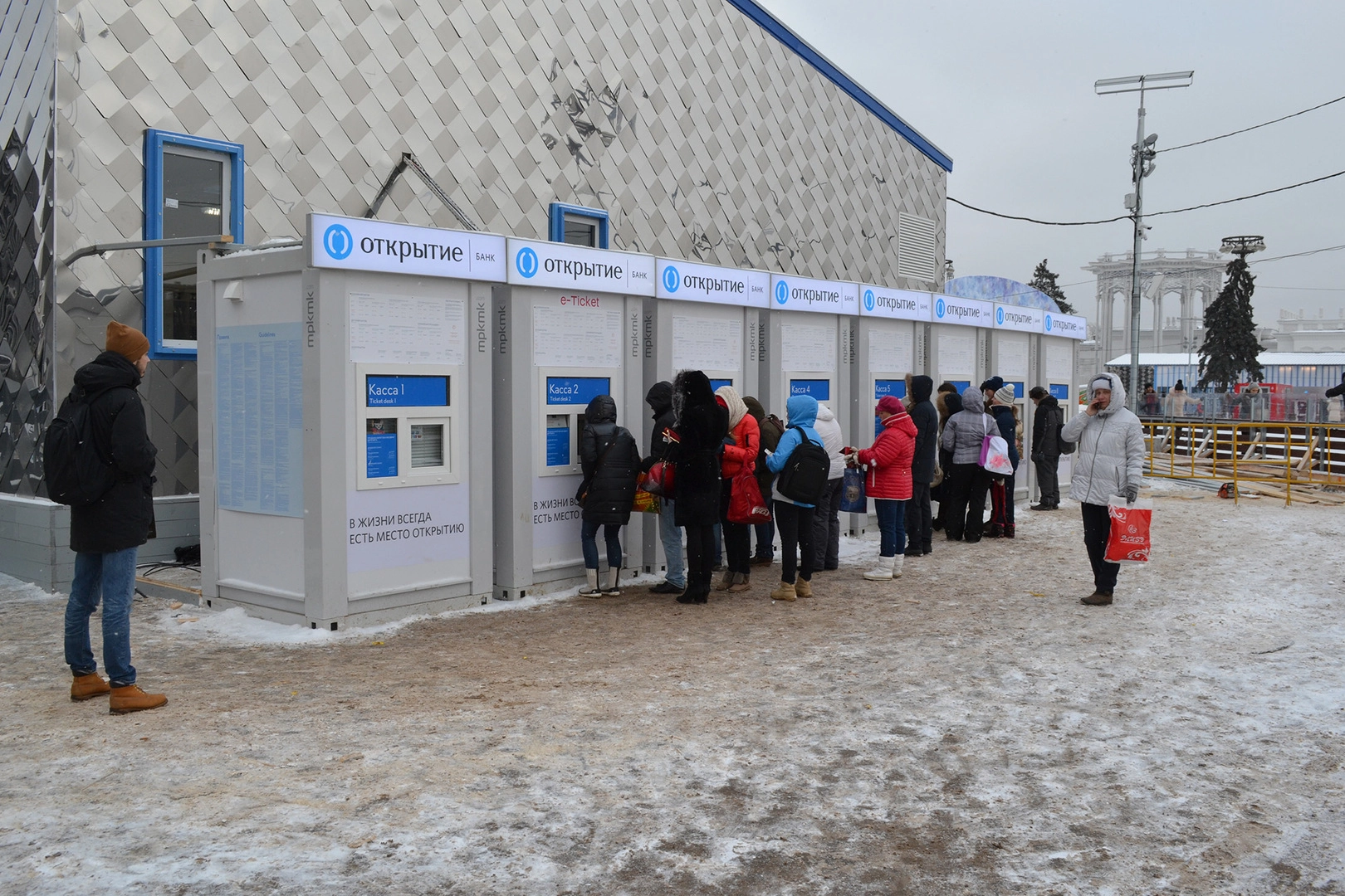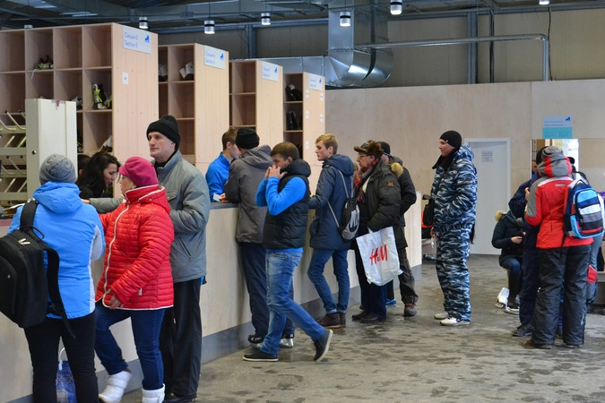 В первые дни на каток пришли порядка 20 тысяч москвичей, то есть, по человеку на квадратный метр, поэтому такая давка и образовалась. В будни народу гораздо меньше. Очередей к кассам практически нет.