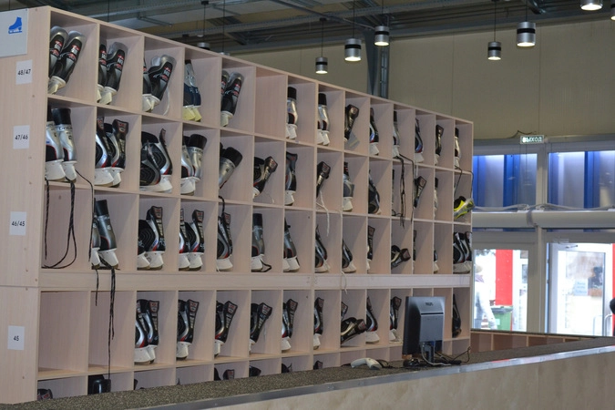Вот так хранятся коньки. Сушилок как таковых не предусмотрено.