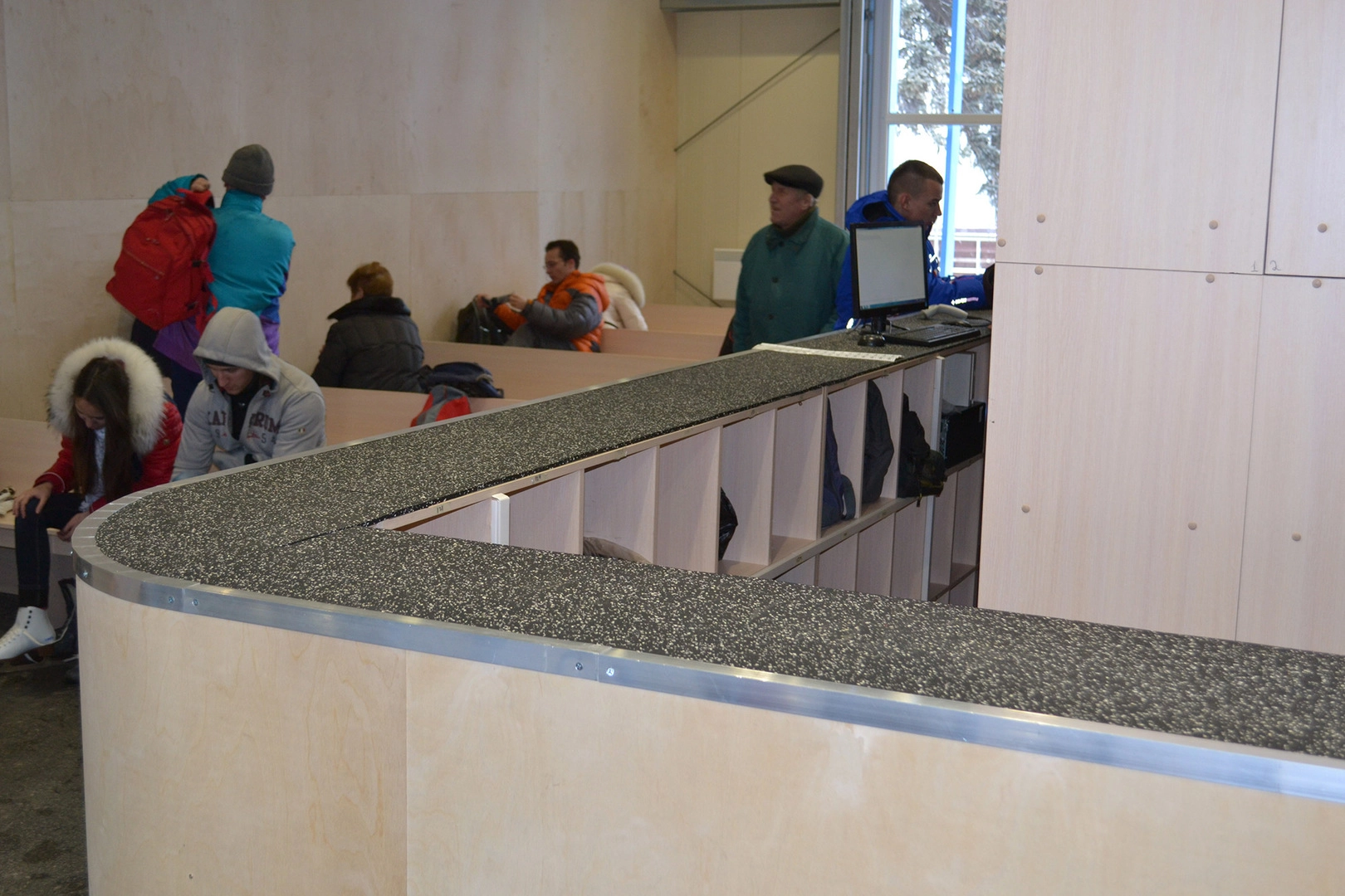 Внутри пахнет древесиной и новым помещением. Раздевалка в будний день показалась просторной.