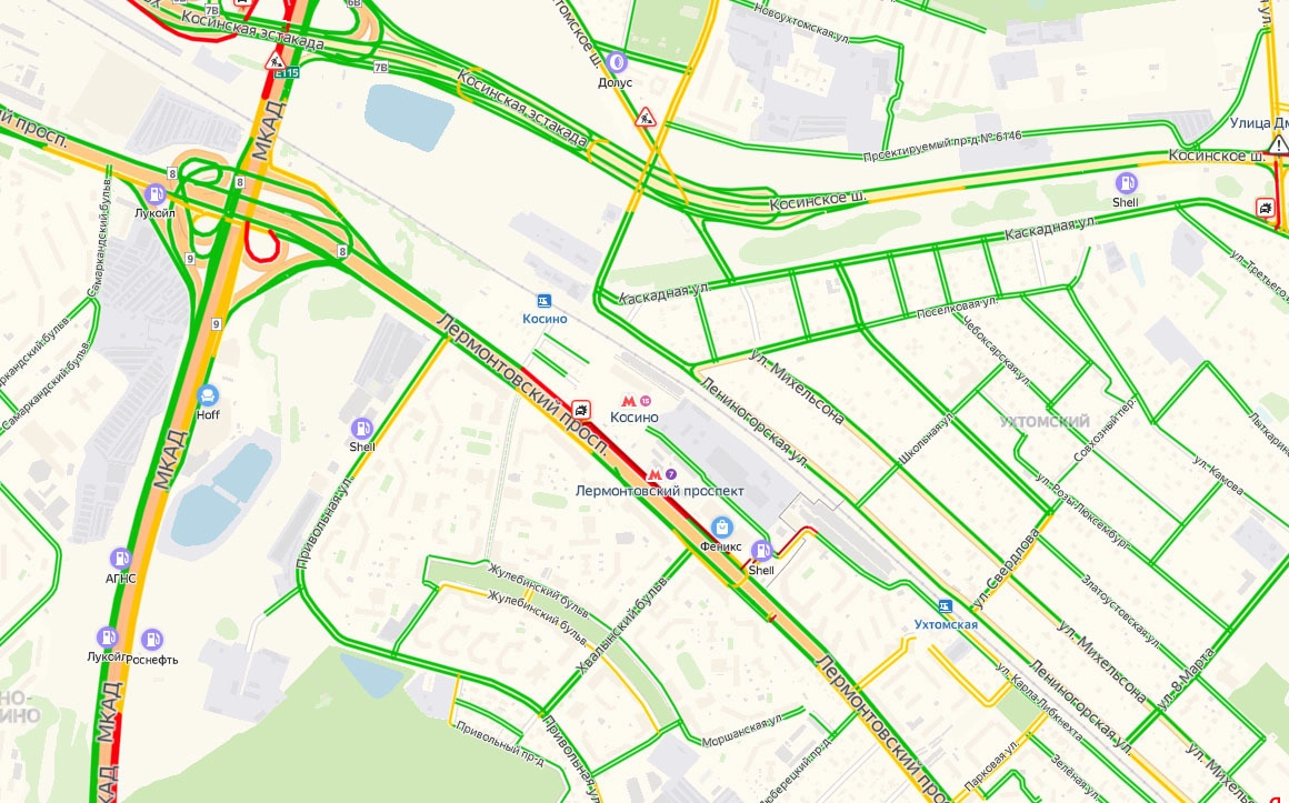 Авария вызвала серьезные пробки на Лермонтовском проспекте, что подтверждается соответствующим сервисом «Яндекса».