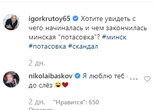 Продюсер и композитор Игорь Крутой опубликовал на своей странице в Instagram видеозапись «потасовки», которая произошла у него с певцом Николаем Басковым в день юбилейного концерта в Минске.