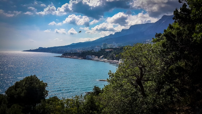 Севастополь и Балаклаву мы помчались в сторону Ялты.На этом маршруте достаточное количество небольших и уютных посёлков. Мы впервые ехали по дороге находящейся рядом с побережьем Чёрного моря.Пейзажи просто потрясающие.