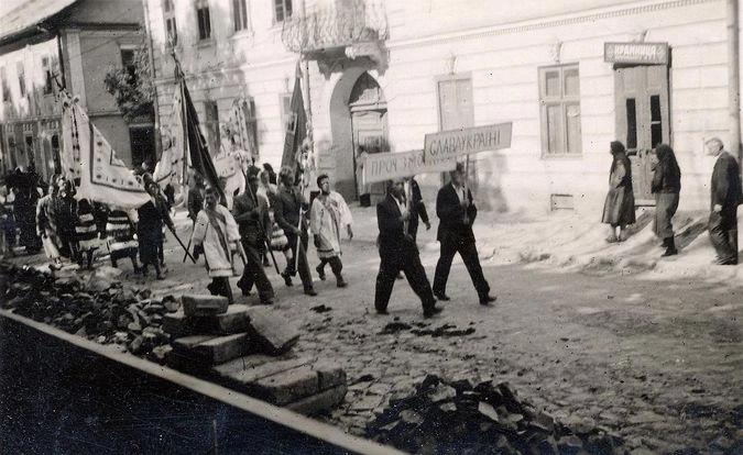 выступают за освобождение Украины в 1941 году. Город неизвестен.