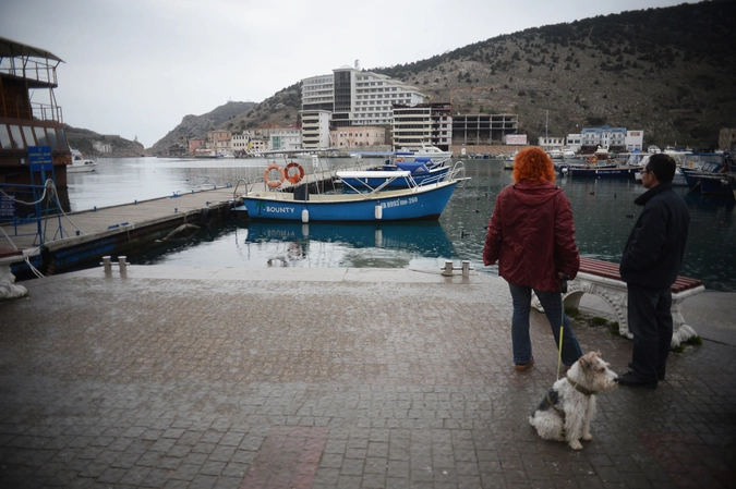 Горожане гуляют на берегу Балаклавской бухты в Балаклаве