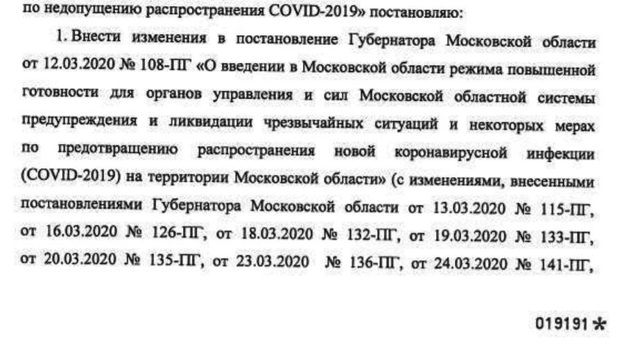 Он посоветовал отслеживать всю оперативную информацию на сайте правительства Подмосковья mosreg.ru. Однако единственный документ, размещенный на этом сайте и имеющий отношение к вопросу, выглядит так, словно он написан на китайском языке.