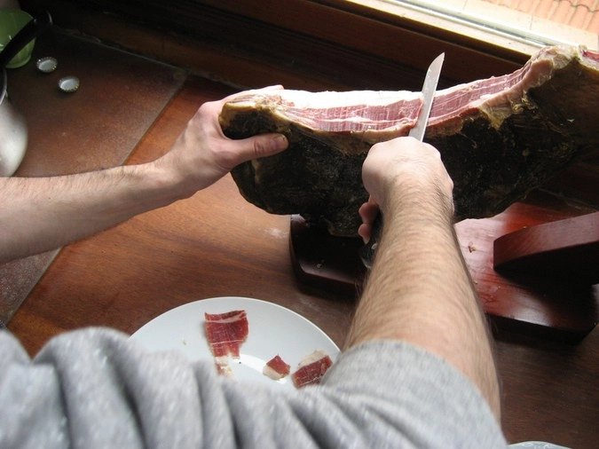 Хамон — испанский мясной деликатес, известный далеко за пределами этой страны. Он представляет собой сыровяленый свиной окорок, который после засолки выдерживается длительное время в специальных условиях.