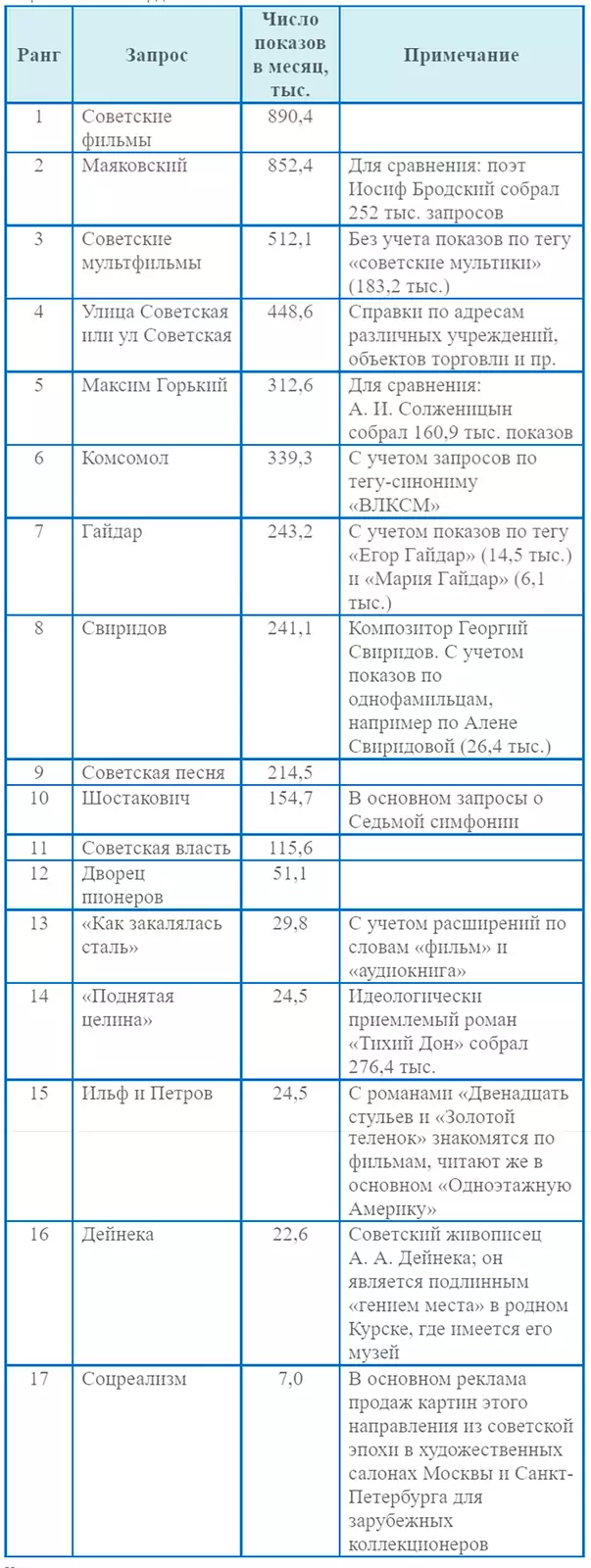 Востребованность символов эпохи СССР среди пользователей «Яндекса»