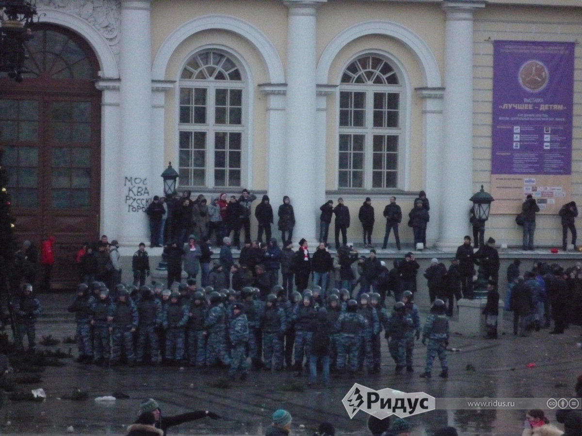 Разговоры градус немного понизили, но толпа все равно была разгоряченная. Когда совсем стемнело и стало холодно, люди начали разъезжаться. Весь следующий день я в провел в ГУВД. Самый длинный допрос в моей жизни, 13 часов. Правда, надо отдать должное, перерыв на обед был. Потом еще таскали на допросы месяца два. Они все были уверены, что это я все организовал, ведь там не было лиц медийных, ни одного лидера фанатов. Последние были предупреждены, что сюда лезть нельзя. Не было людей, с кем можно вести переговоры. А я почти всю Манежку простоял с Бирюковом и иже с ними.
