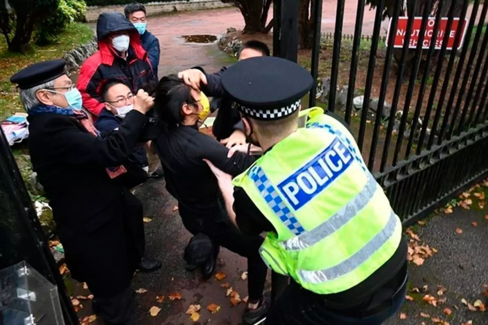 Кадры нападения китайских служащих и охраны на протестующих у консульства КНР в Манчестере привлекли внимание прессы Великобритании к деятельности китайской полиции на Британских островах. Инцидент произошел после публикаций о деятельности полиции Китая под прикрытием гражданских и коммерческих учреждений на Британских островах.