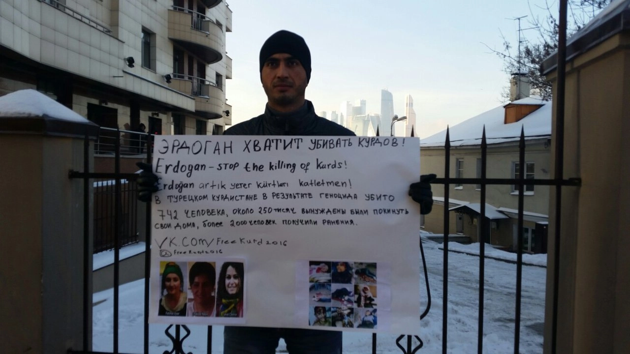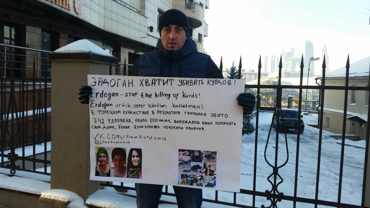 Пикетчики осудили агрессию Турции против мирных жителей турецкого Курдистана, а также потребовали остановить геноцид курдов, проводимый с подачи лидеров государства. На плакате, с которым вышли пикетчики, изложена информация о количестве убитых курдов и о том, сколько курдов было вынуждено покинуть свои дома.
