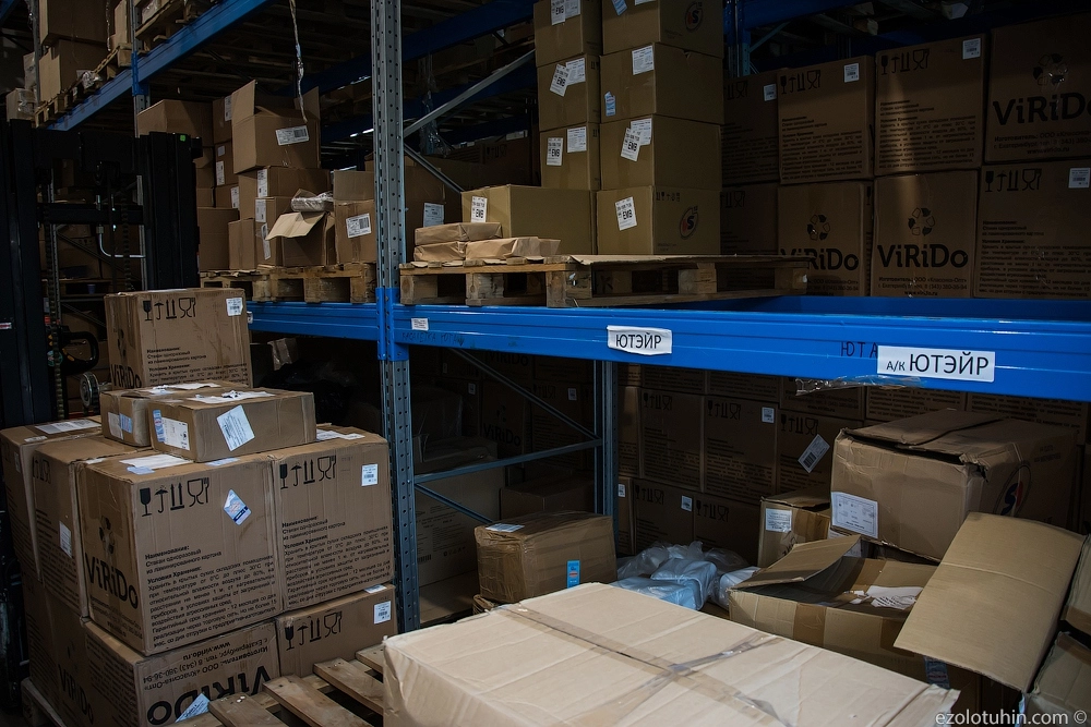 А сами заготовки для картонных боксов хранятся в отдельной комнате.