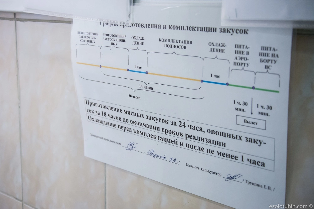 Подготовку к рейсу начинается примерно за сутки. У самолетной еды срок годности не более 4 часов!