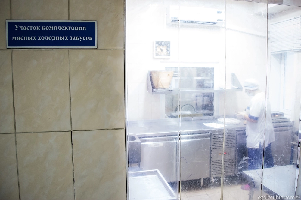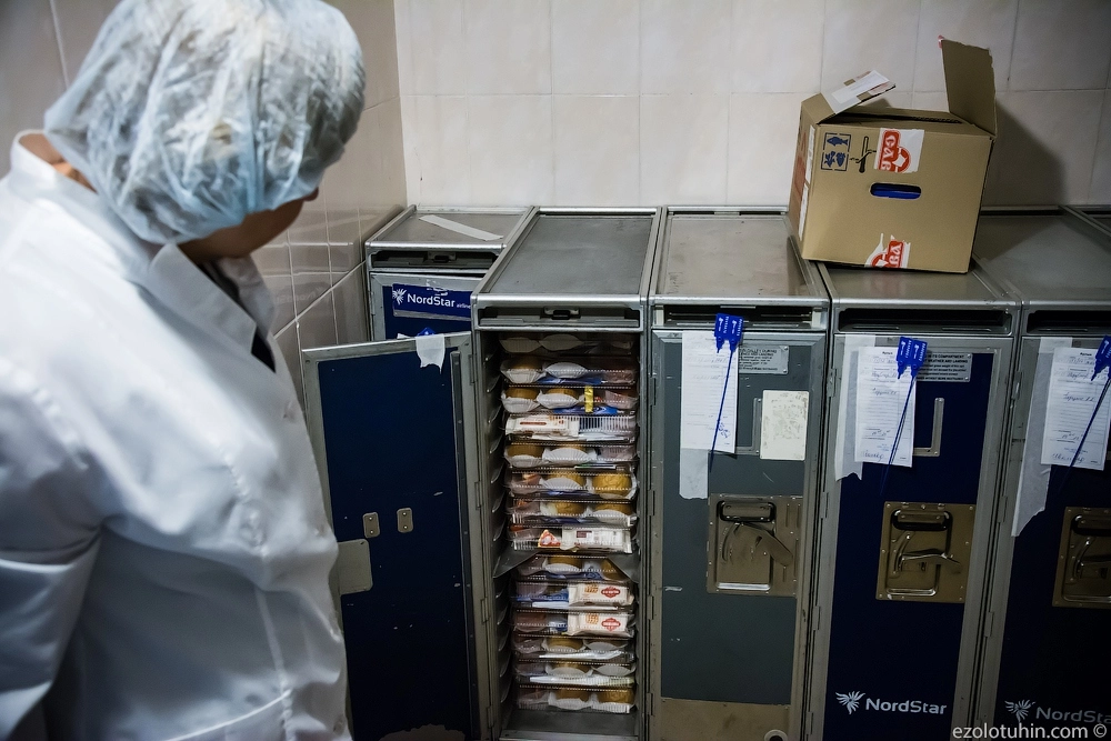 На этих кухнях частенько готовят еду для самолетов с серьезными гостями. Например, тут готовили еду для рейса с делегацией во главе с Игорем Сечиным, там было все как у людей, только в более сложном и красивом исполнении.