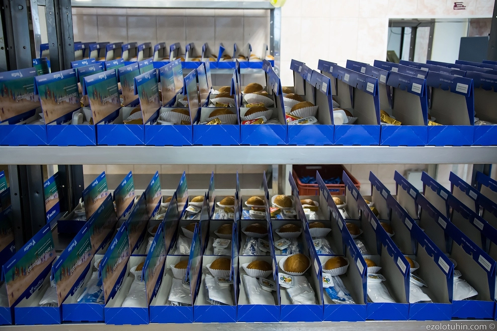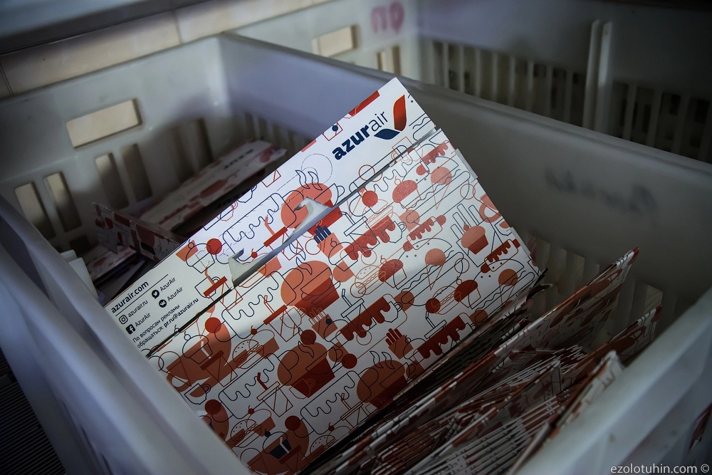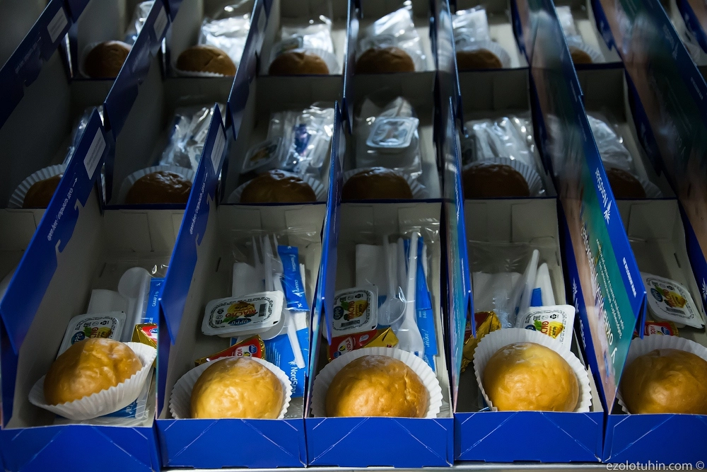 А вот уже наполненные боксы NordStar, осталось все проверить и отправить на борт. Все комплекты обязательно должны выглядеть одинаково, чтобы никому из пассажиров не стало обидно во время полета.