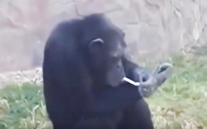 Курящая обезьяна шокировала посетителей зоопарка