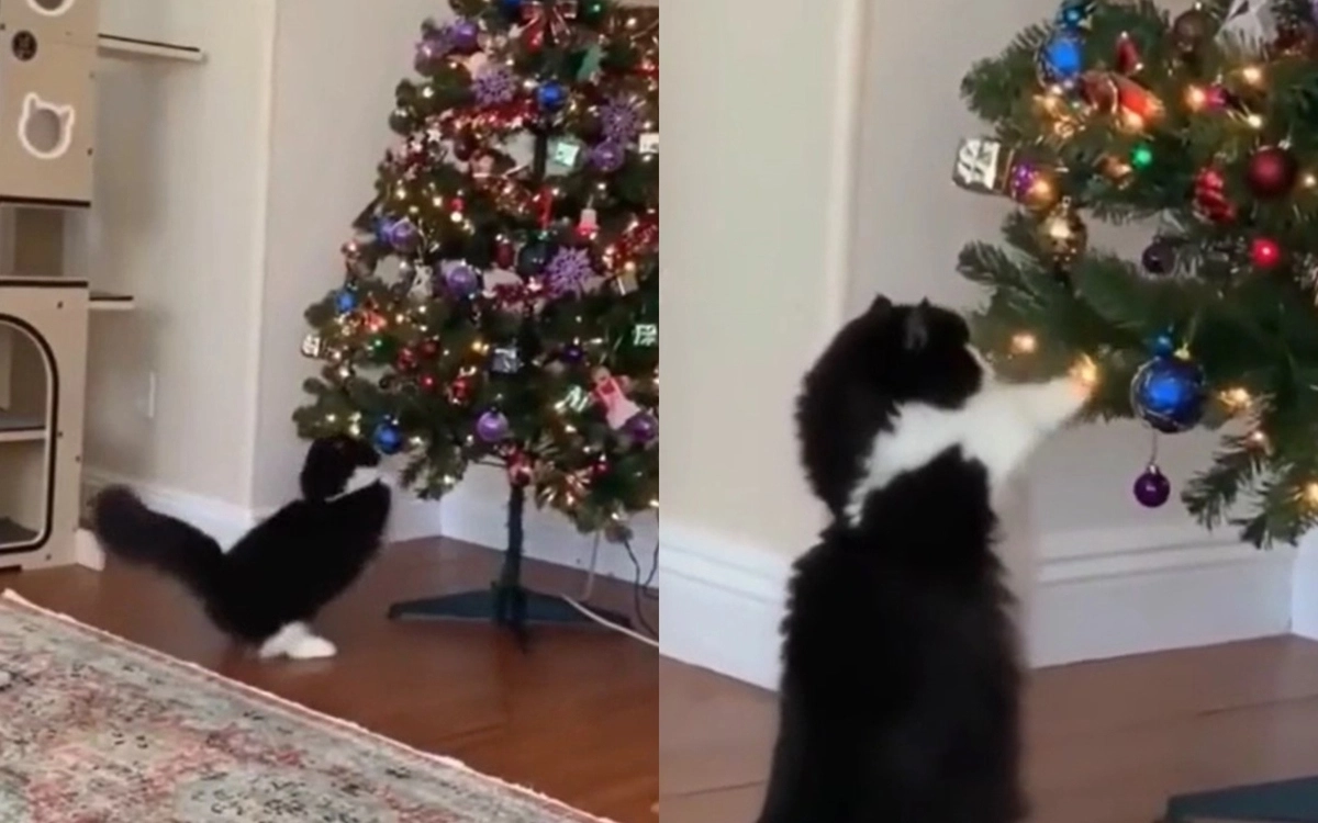 Ролик с умилительным нападением кота на украшение собрал более миллиона просмотров и тысячи комментариев в TikTok и Instagram.