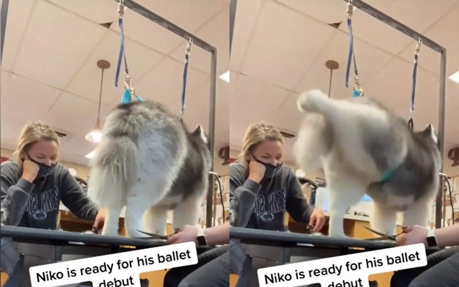 Пользовательница TikTok под ником petbathandbeyondgroomin поделилась роликом, запечатлевшим разминку будущей пушистой звезды балета по кличке Нико. Прямо во время стрижки пёсель решил немного потянуть лапки, чем сильно насмешил хозяйку и грумера. Девушки изо всех сил пытались сосредоточиться, чтобы спокойно продолжить стрижку, но забавные движения Нико все время им мешали.