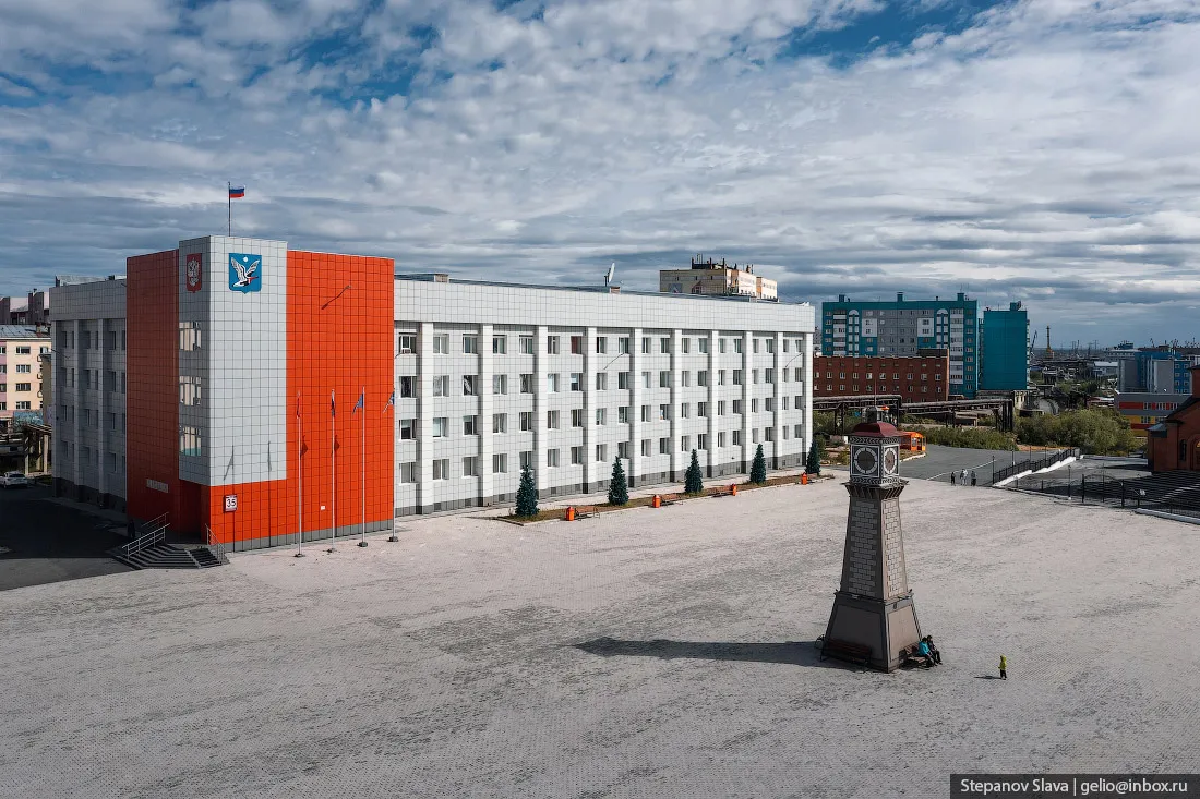 На площади перед администрацией установлена ещё одна достопримечательность города — башня с часами. Местные называют башню Биг-Бен. А часы для неё подарил городу Норникель.
