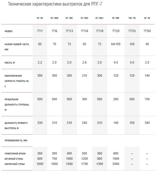 Для преодоления защиты танков с многослойной композитной бронёй (британский «Челленджер», американский М1 «Абрамс», немецкий «Леопард-2») в СССР разрабатывался и в 1977 году был принят на вооружение выстрел ПГ-7ВЛ. Достигнуть повышения бронепробиваемости удалось за счёт увеличения калибра головной части гранаты и массы разрывного заряда. Это утяжелило гранату и уменьшило дальность стрельбы, но позволило увеличить до полуметра толщину пробиваемой брони.