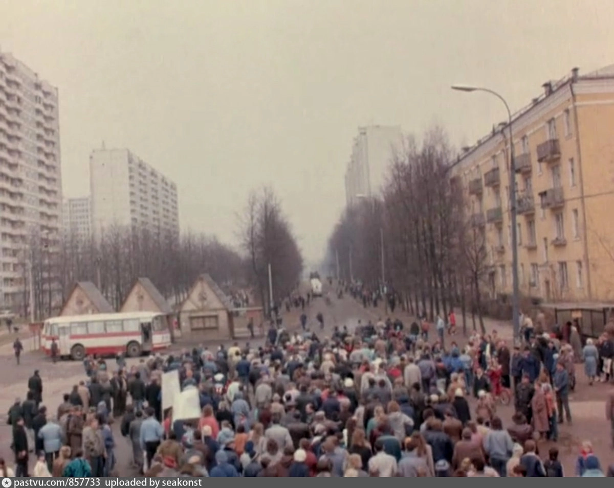 Перед Домом пионеров на улице Кунцевской была площадь, на которой, например, проводились съемки одного из проходных низкопробных фильмов начала 1990-х — «Система „Ниппель“», 1990 год.