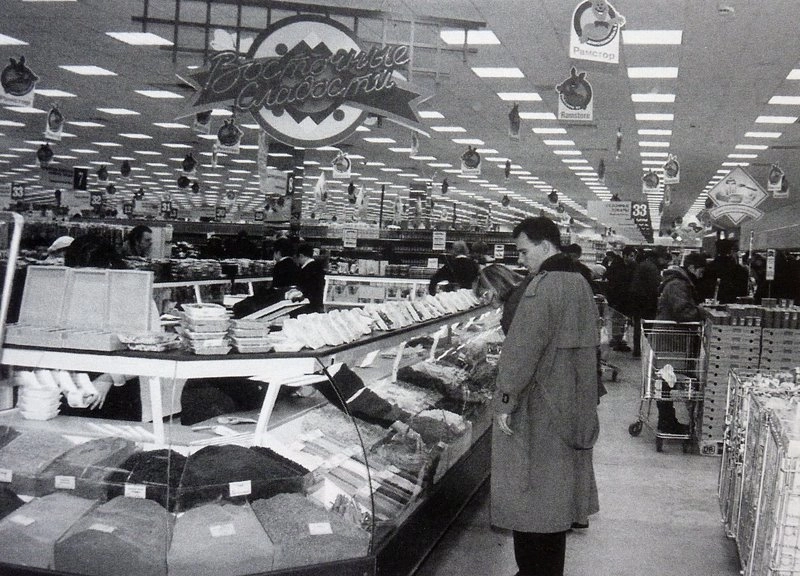 Конечно, в 1997—1998 годах многие ходили в гипермаркет просто посмотреть, ходили меж рядов с раскрытой пастью, несмело приближались к полкам, боялись быть традиционно обманутыми (опять спасибо партии и правительству). Тащили однако же оттуда в циклопических количествах.