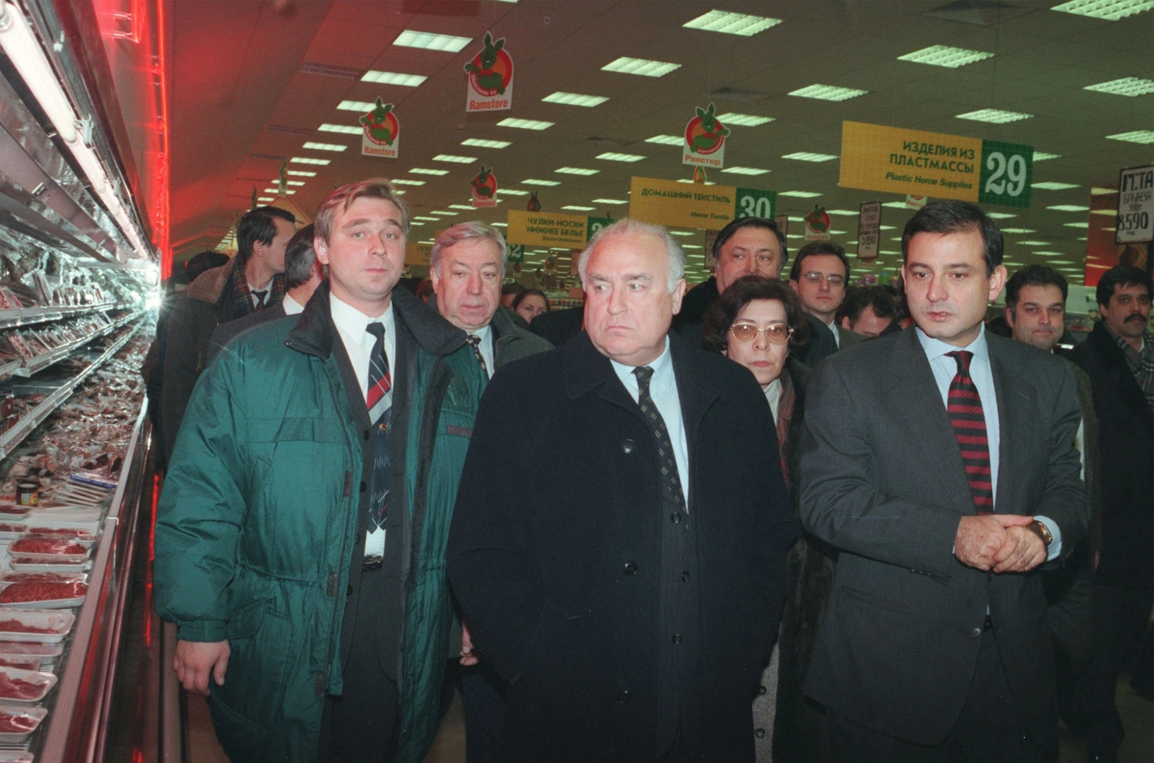 Премьер-министр РФ Виктор Черномырдин (на снимке в центре) посетил открывшийся самый крупный в России торговый комплекс европейского класса — «Рамстор».