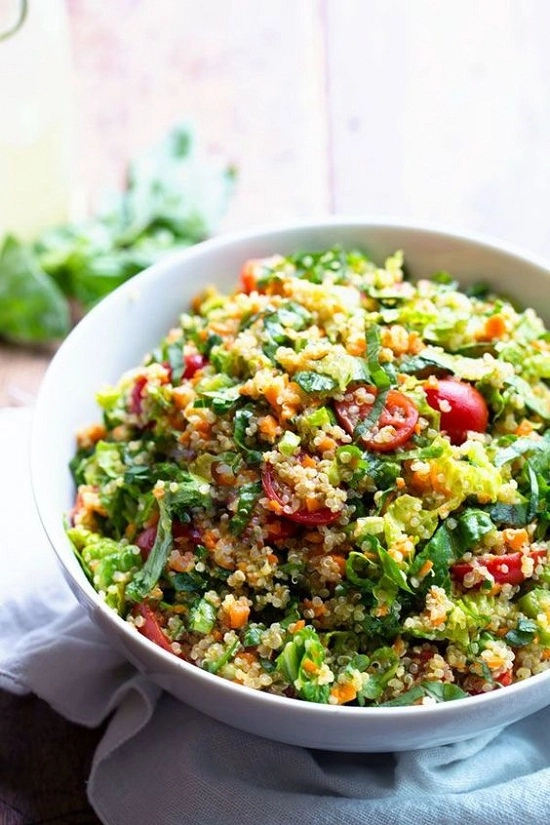 Очень необычный экзотический салат, в котором в качестве заправки вместо майонеза используется авокадо. Выглядит по-праздничному — зеленый цвет авокадо перемежается с желтым манго и красными помидорами черри. Вкус — не уступает внешнему виду. Нежные нотки авокадо дополняются умеренной сладостью манго, тропической кислинкой лайма, и все это уравновешивается базой из киноа.
