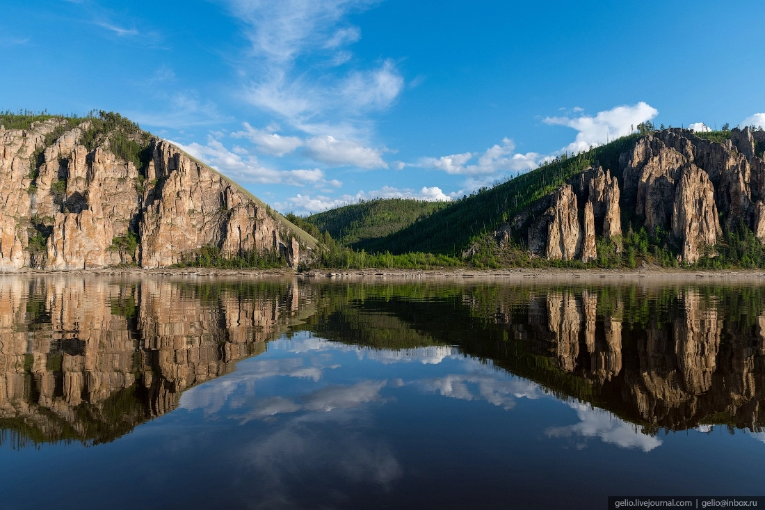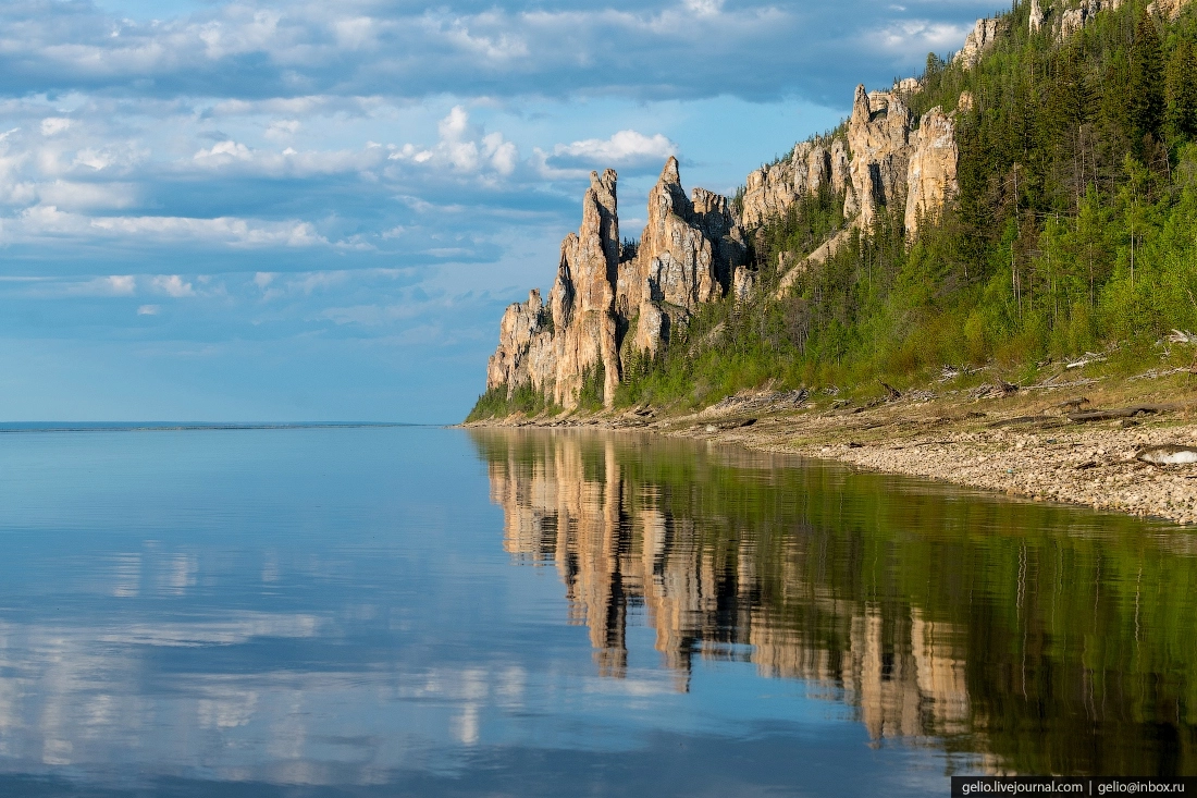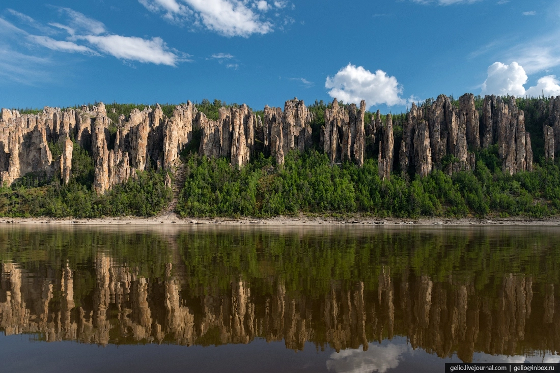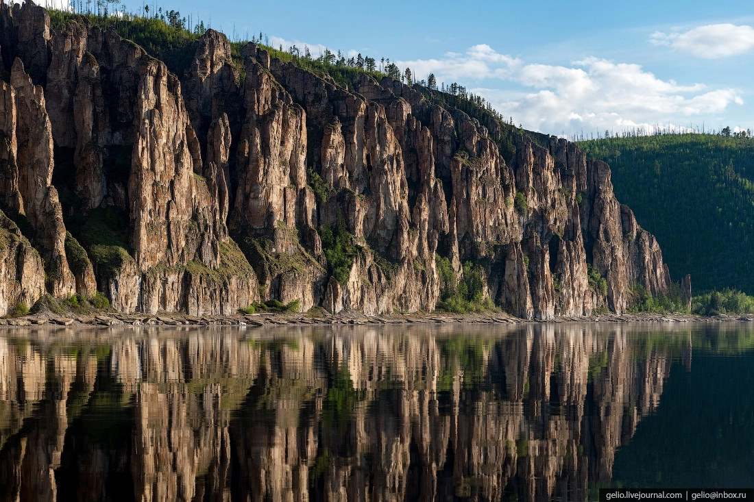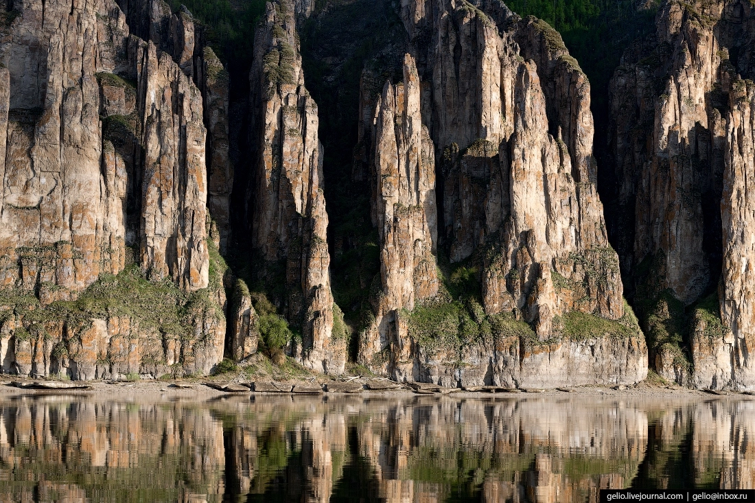 Река у подножия столбов служит зеркалом, благодаря чему скалы кажутся вдвое больше.