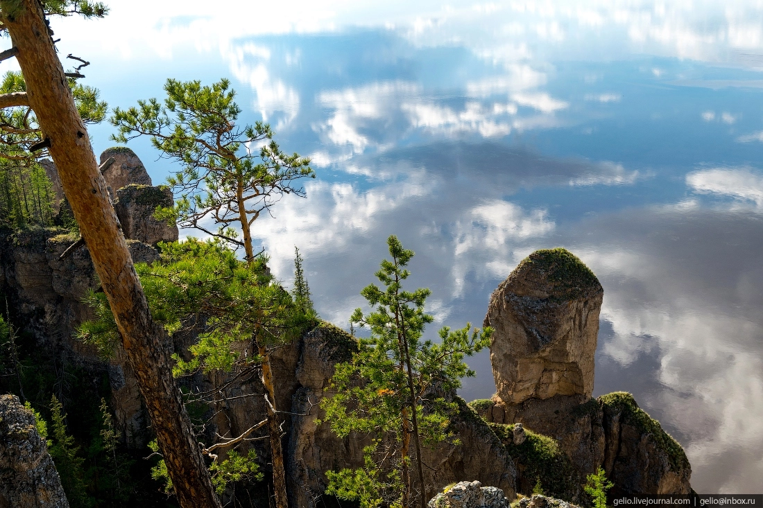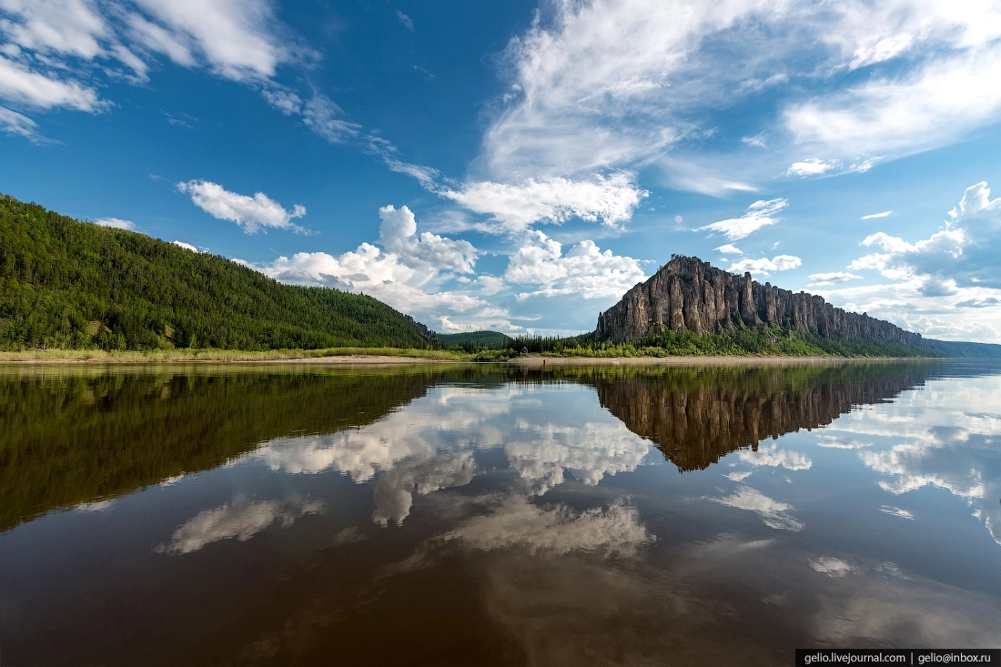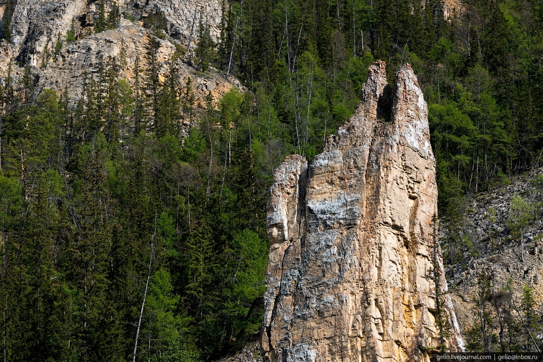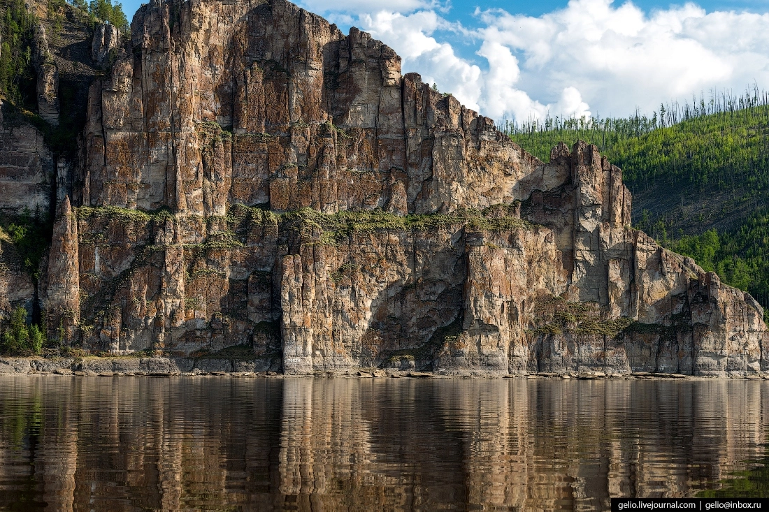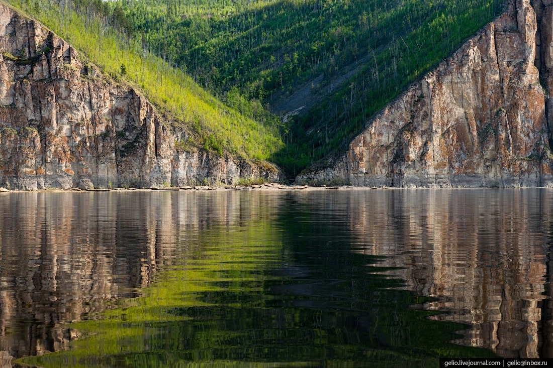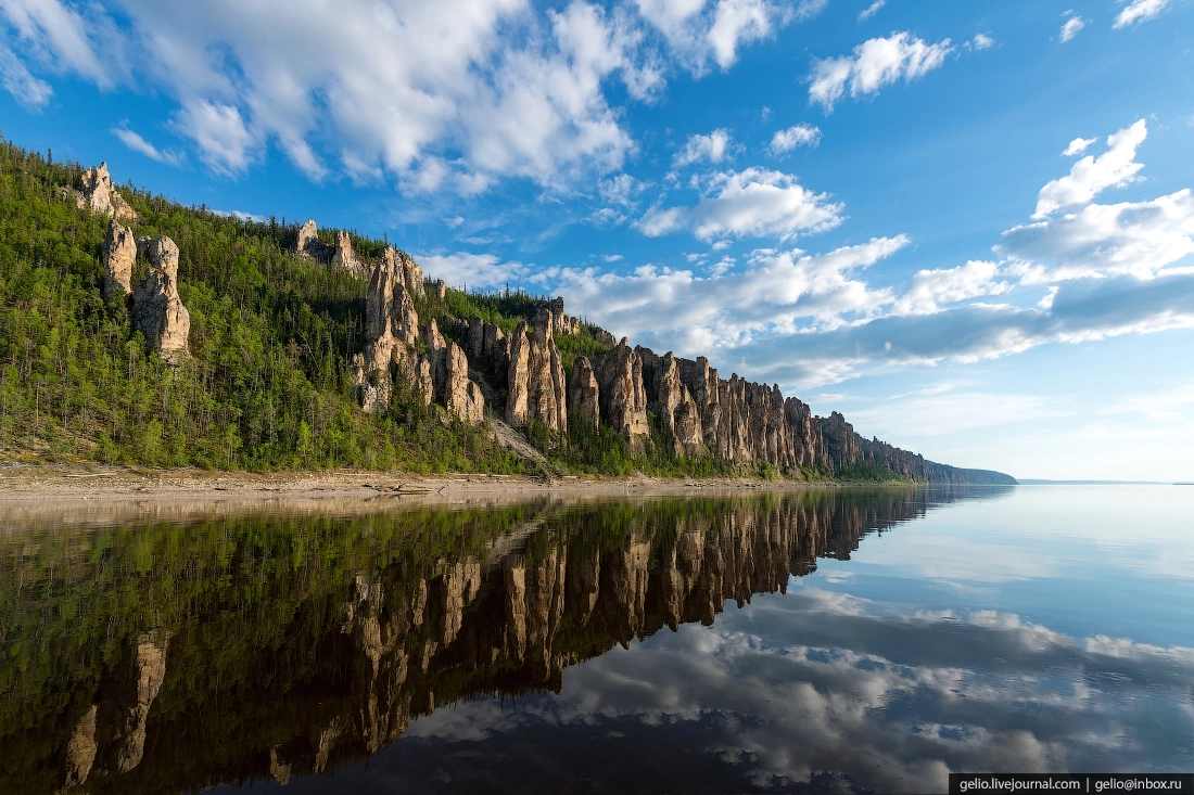 Река у подножия столбов служит зеркалом, благодаря чему скалы кажутся вдвое больше.