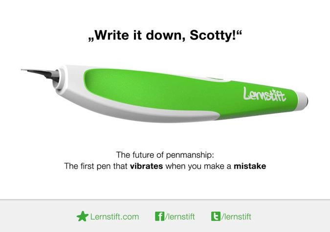 Немецкие изобретатели разработали прототип пера Lernstiff Smartpen, который должен помочь человеку делать меньше орфографических ошибок. Lernstiff (в переводе с немецкого означает «обучение пера») – является цифровой ручкой, которая, кроме чернил, имеет встроенный внутрь корпуса компьютер, предупреждающий пользователя об орфографических ошибках.