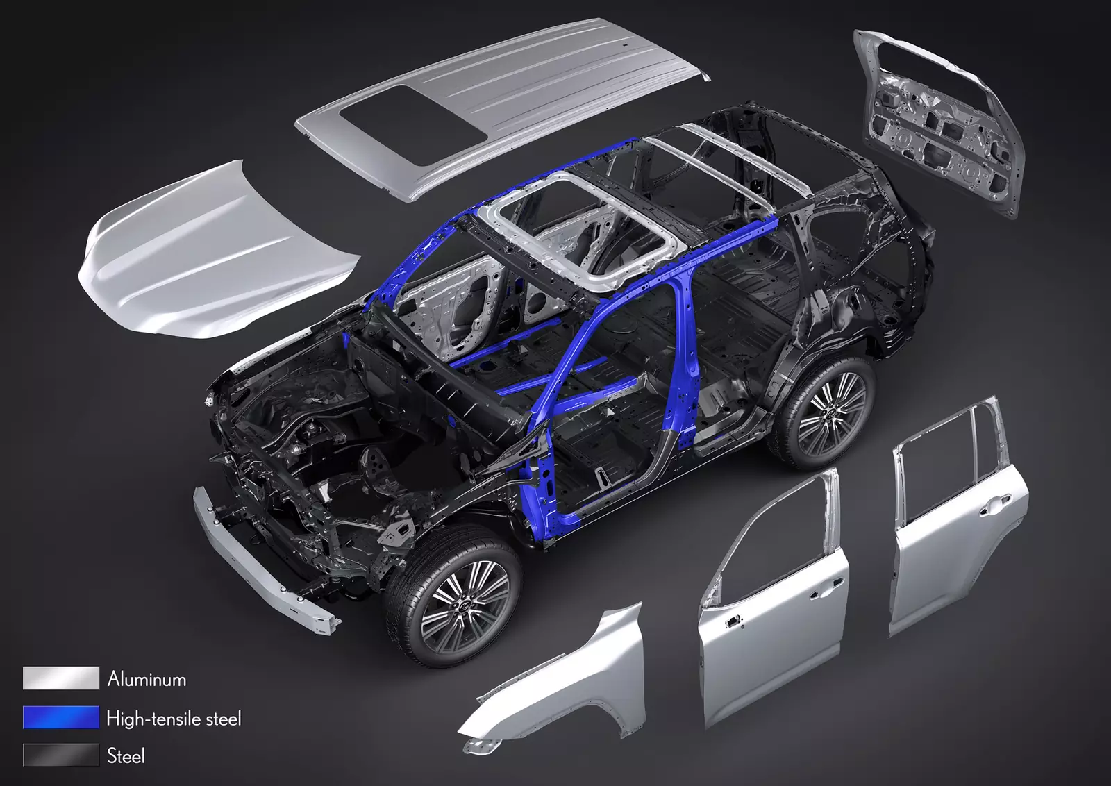 Сохраняя традиционную рамную конструкцию кузова, в Lexus снизили вес автомобиля на 200 кг благодаря новой платформе GA-F.