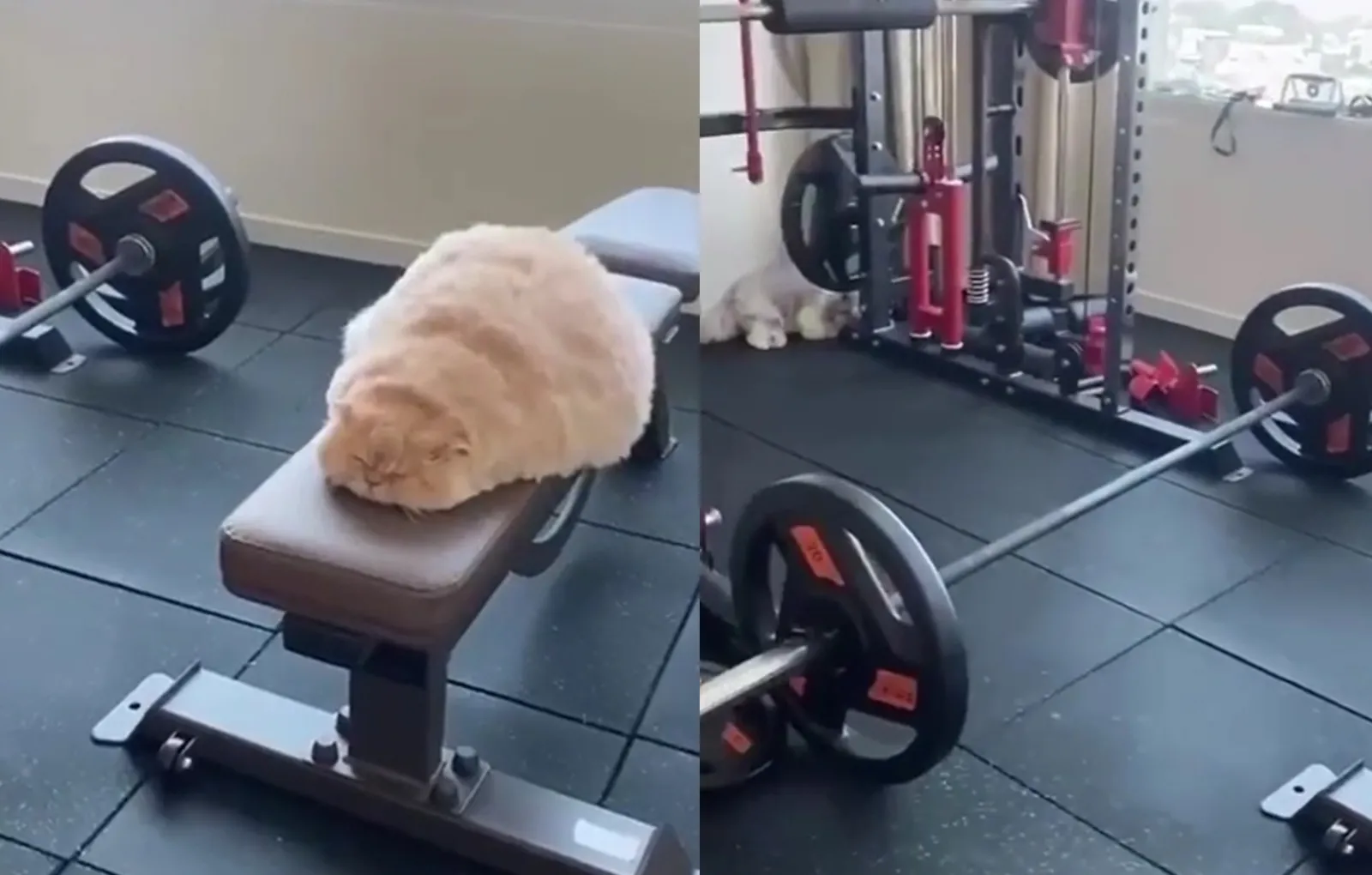 Посетители тренажерного зала бывают разными. Как правило, большинство из них усердно тренируются, не обращая внимания на остальных. Но некоторые умудряются лениться и расслабляться, совсем как котейка из этого видео.