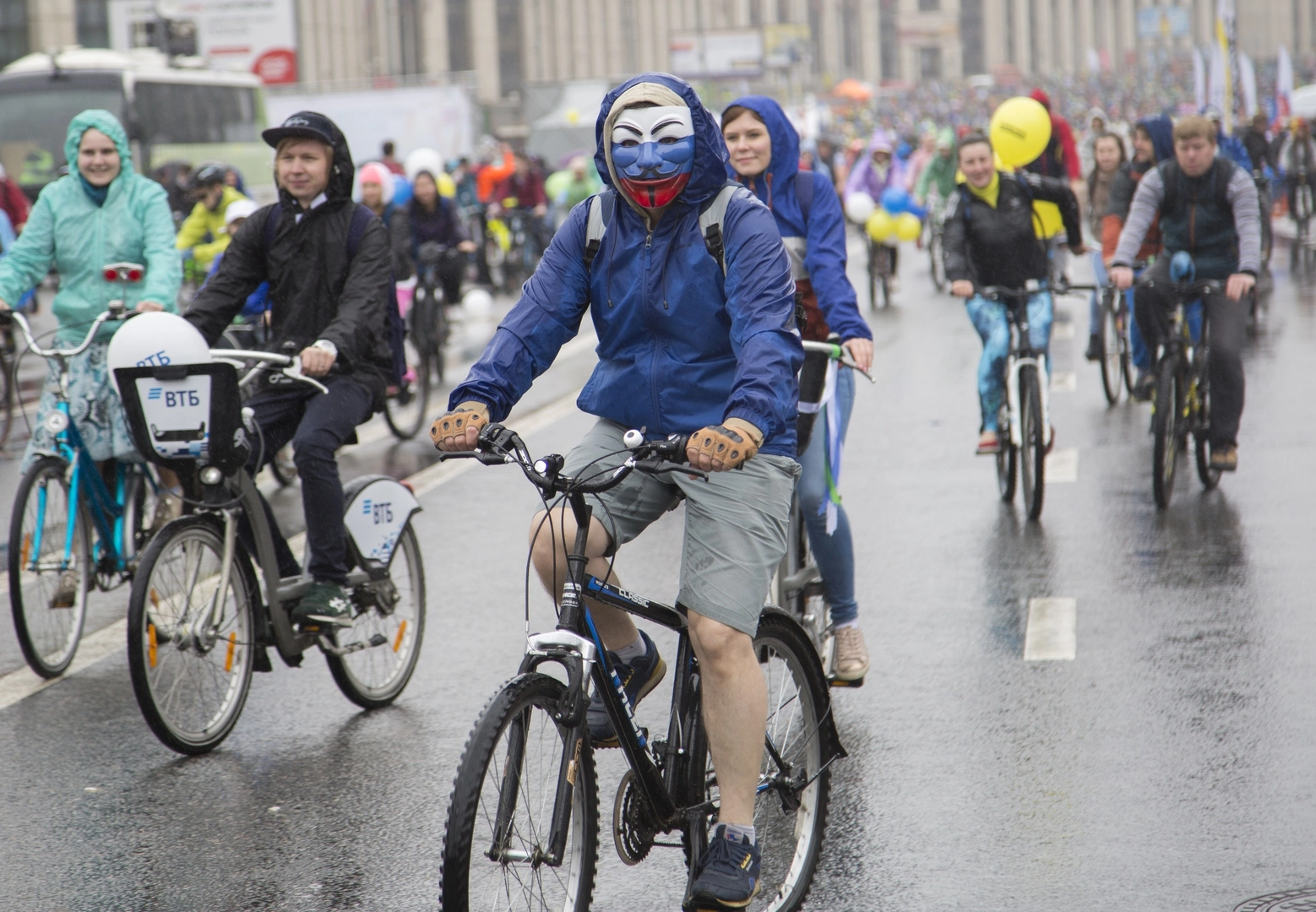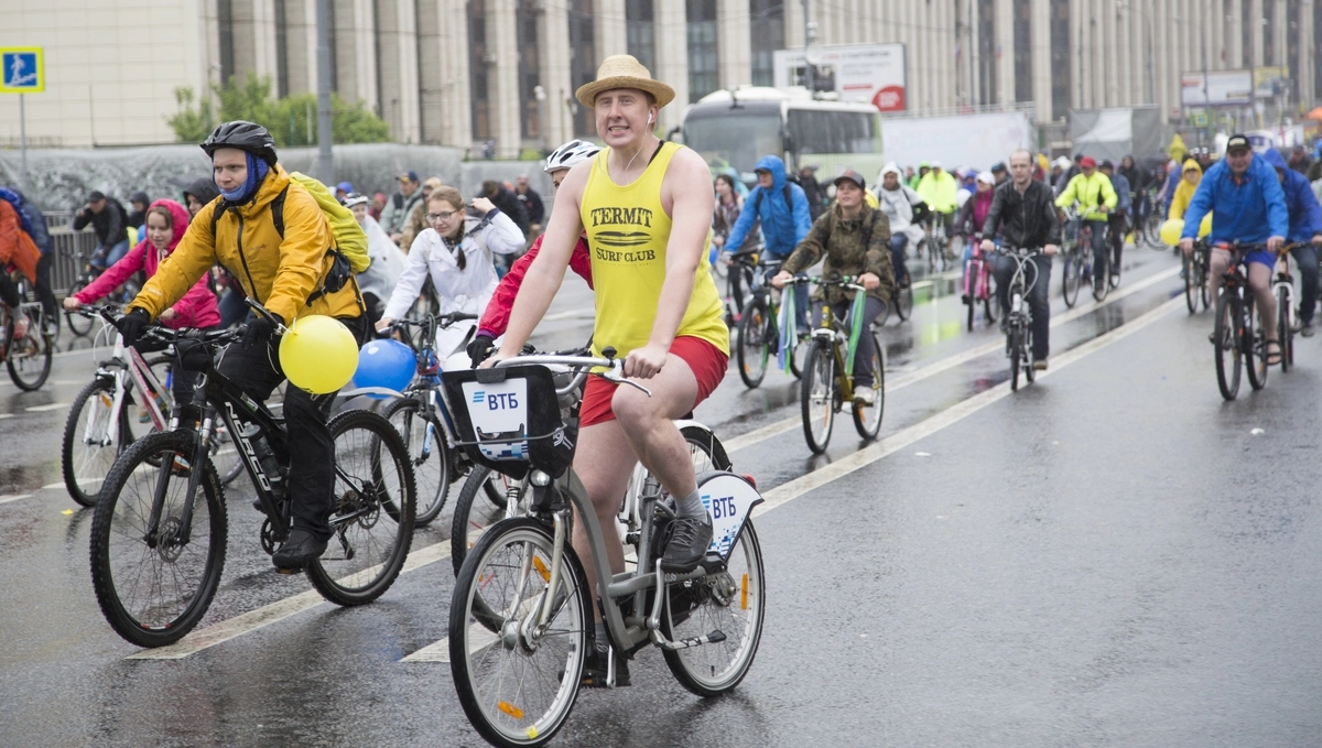 Организатор велопарада, координатор движения Let’s bike it! Владимир Кумов отметил, что этот велопарад — самый дождливый среди всех проведенных велопарадов в Москве.