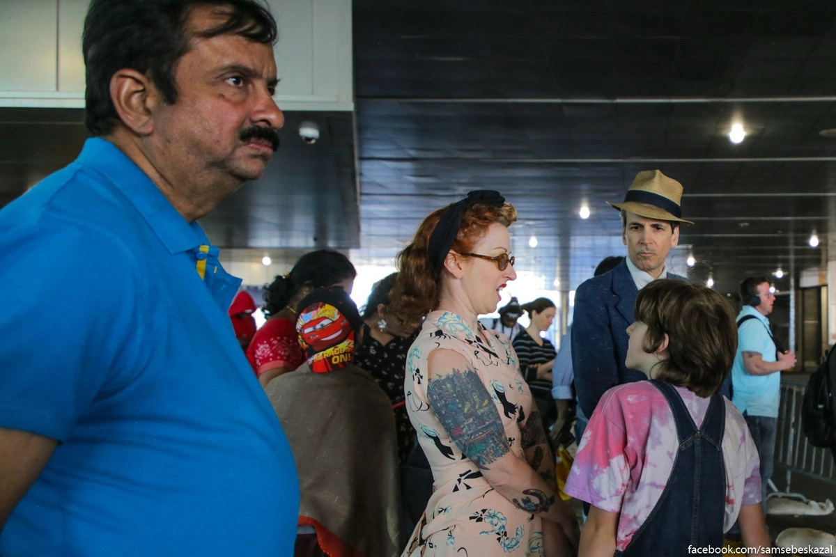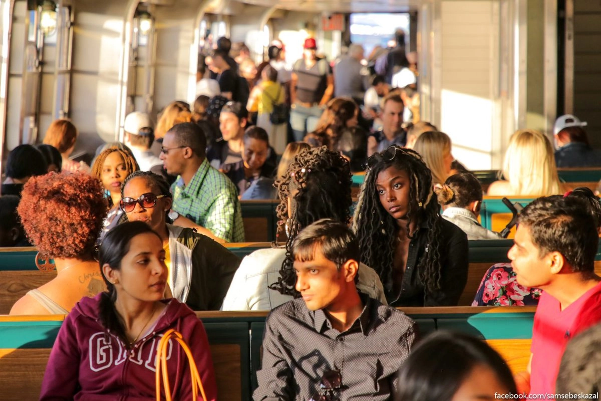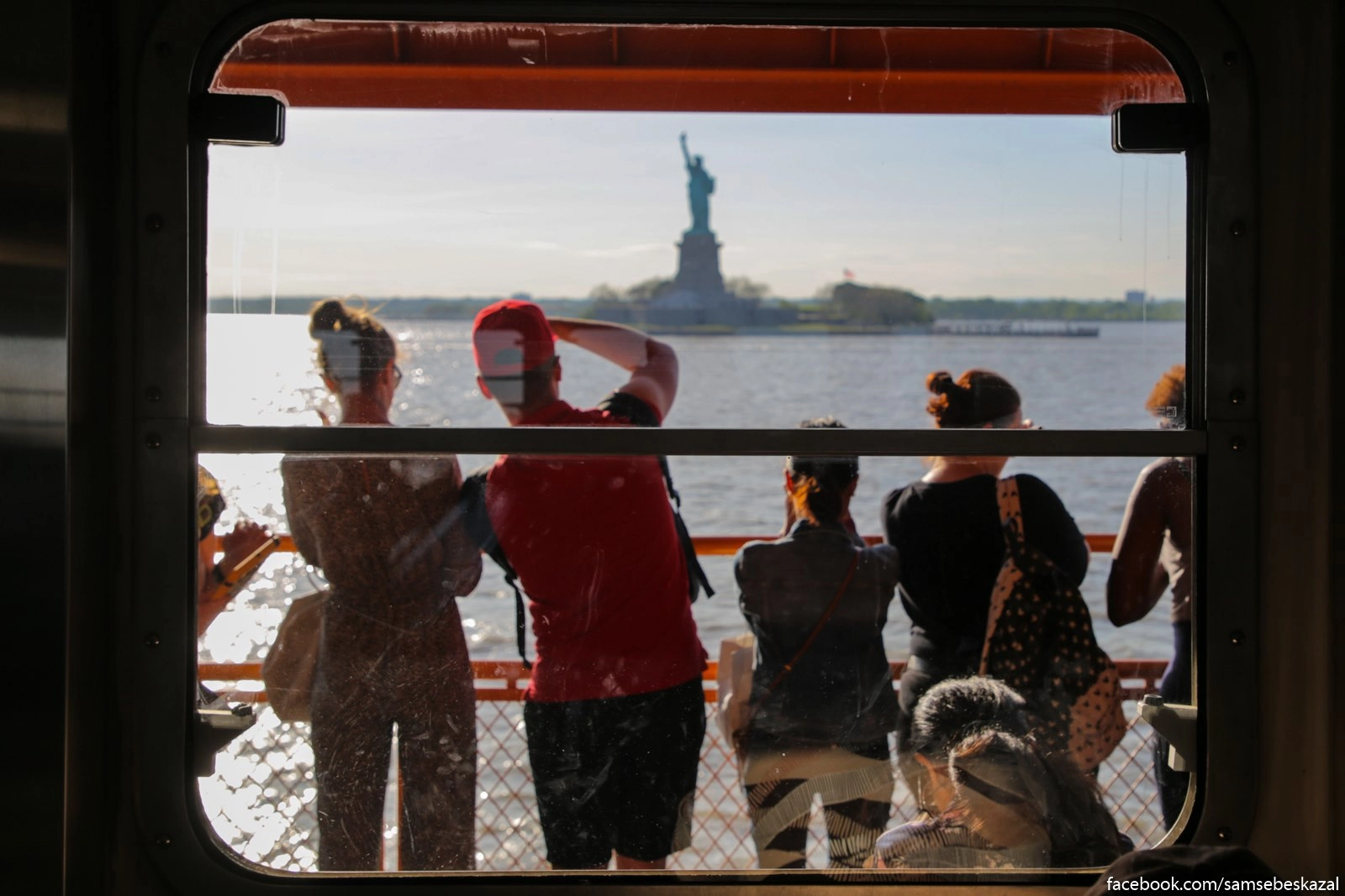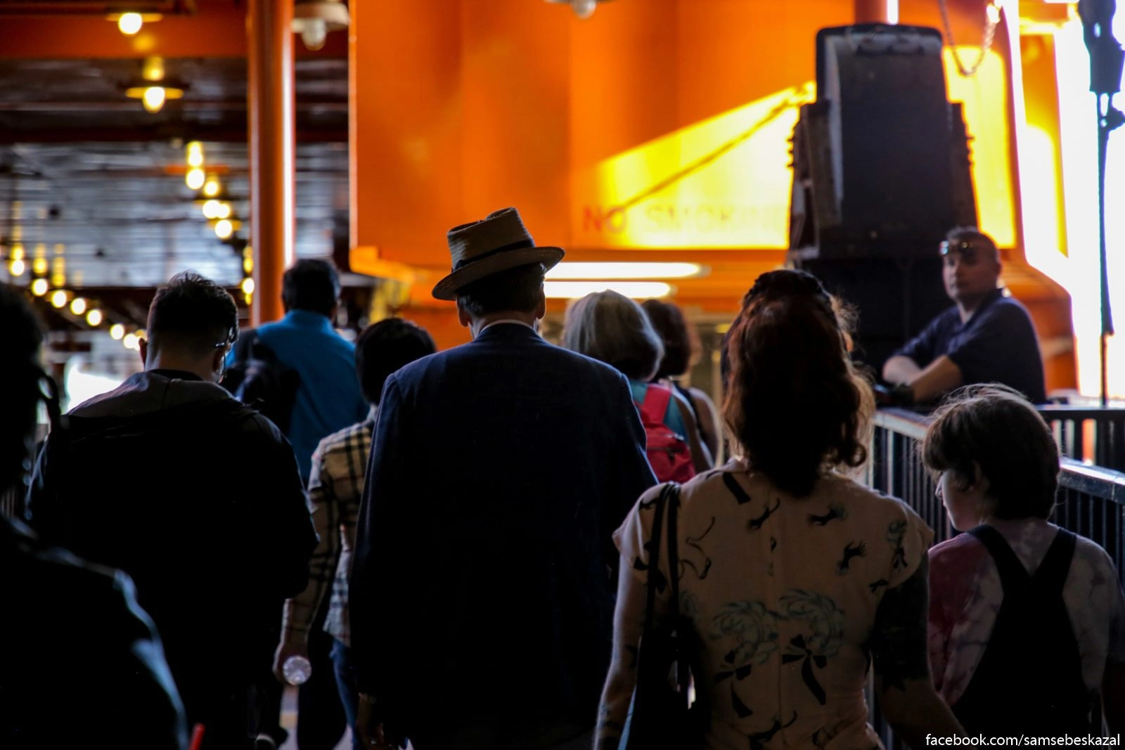 Пассажиры во время посадки на паром идущий на Статен-Айленд.