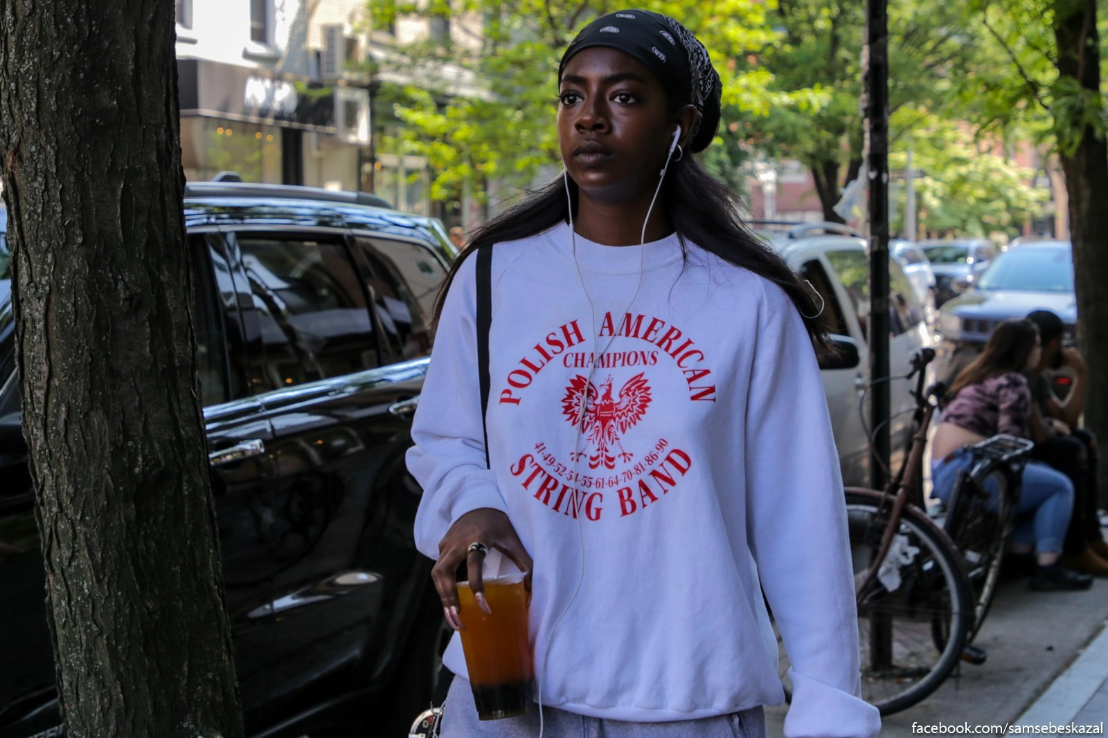 Почему некоторые девушки всегда ходят вот так? Я про руки. Уильямсбург.