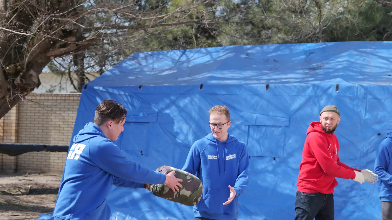 На территорию Донбасса для помощи беженцам прибыла первая группа волонтеров «Молодой Гвардии „Единой России“» и «Волонтерской Роты „Боевого Братства“». Лагерь добровольцев развернут в двух точках Донецкой области: поселке Володарское и селе Безыменное.